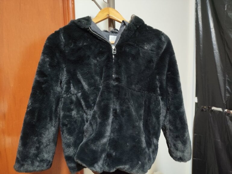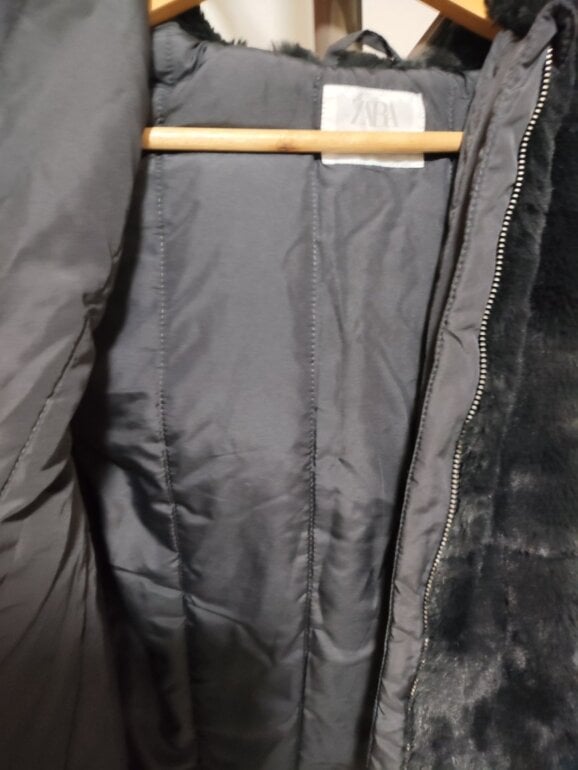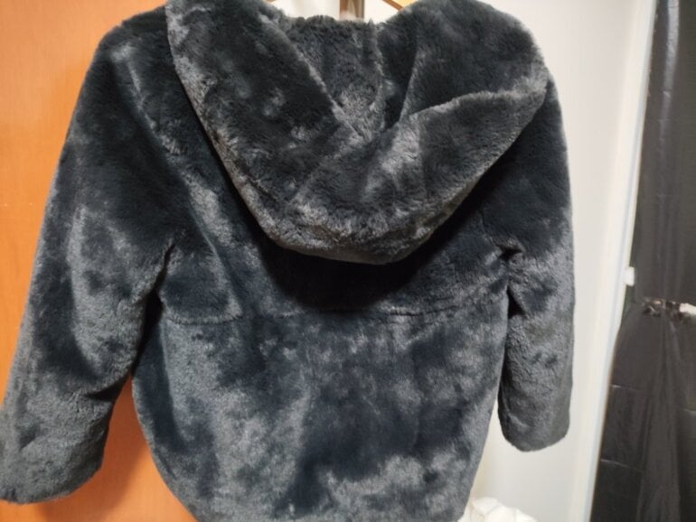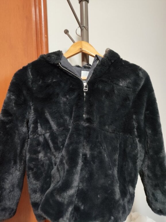 Abrigo estilo peluche marca Zara Kids talla de 10 años color gris, es ligeramente brilloso ante la luz pero nada que se vea exagerado, puede usarse en un adulto pequeño con estatura promedio de 140-150 cm y de complexión delgada. Es muy abrigador, no tiene ningún detalle, se encuentra en perfecto estado, el cierre funciona bien y tiene un gorro que queda perfecto para cubrir del frio o lluvia.