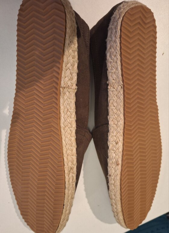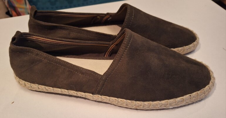 Alpargata o espardeña de material exterior tipo gamuza en verde olivo , suela tipo goma, son muy delgadas. Este modelo no viene en caja ni con etiquetas pero estan nuevos, originales sfera, estética 10/10.