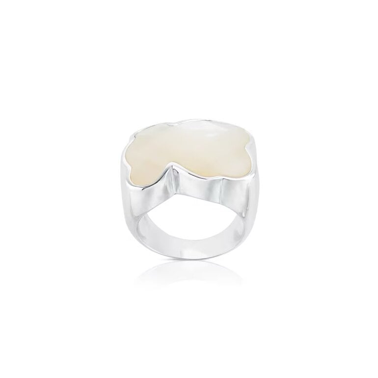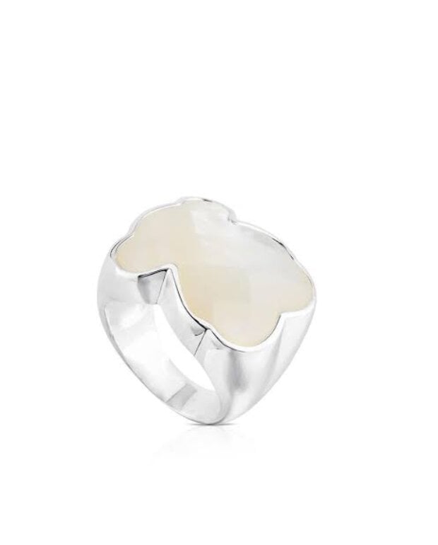 Anillo en excelentes condiciones!!! De plata original con gema de oso Tous blanco nácar
