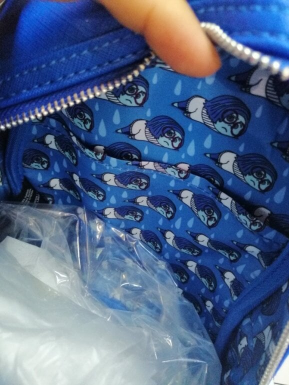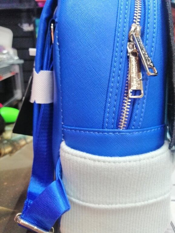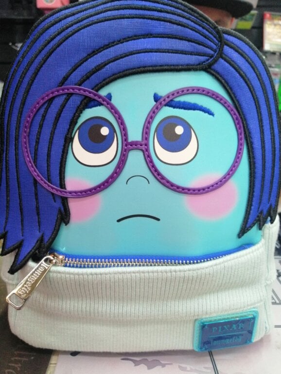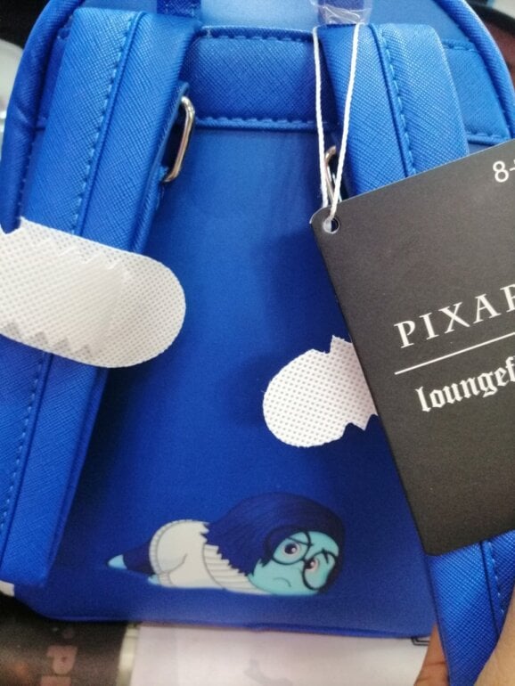 Padrísima backpack loungefly de intensamente en colores azul marino y azul claro con diferentes texturas, trae plaquita de la marca y con grabados en los cierres de la marca, trae estampado interno muy lindo, de igual manera tiene efectos y bordados en 3d como son típicos de la marca.