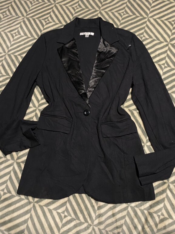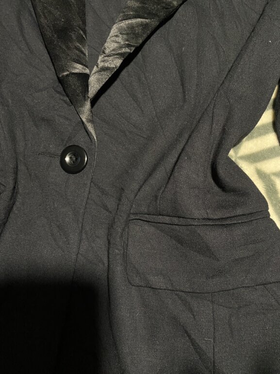 La tela es como si fuera de playera lo que lo hace muy casual, pero la solapa es satinada le da un toque más formal y elegante!