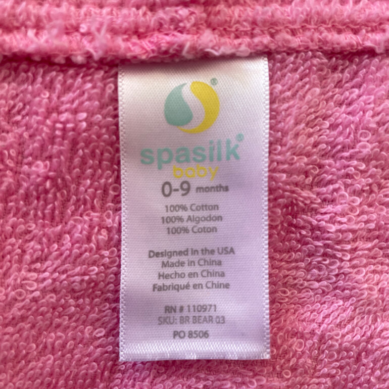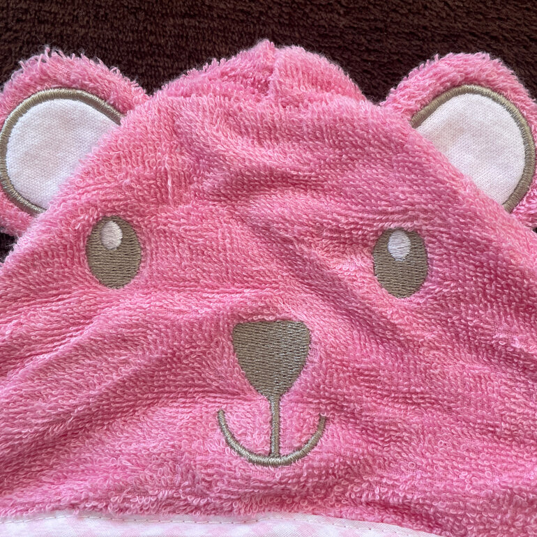 Batita para baño color rosa con gorro de oso, completamente nueva sin etiqueta