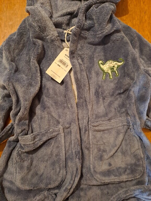 Bata de baño para edades de 4-6 años, color azul y dinosaurio verde, nueva con etiqueta