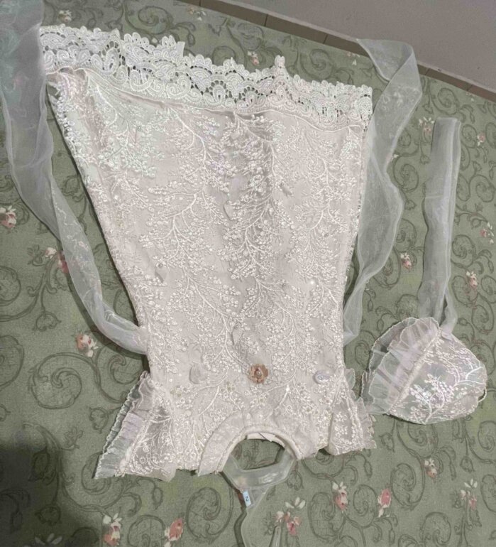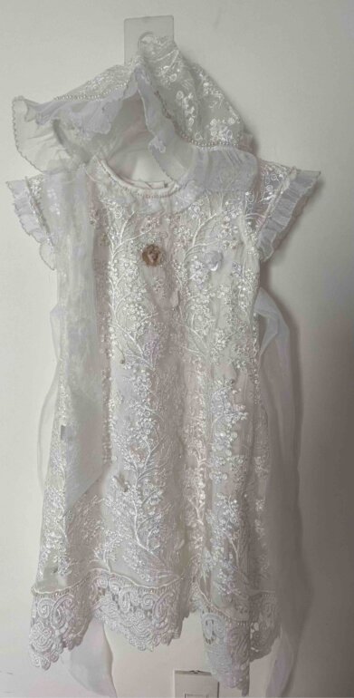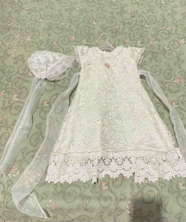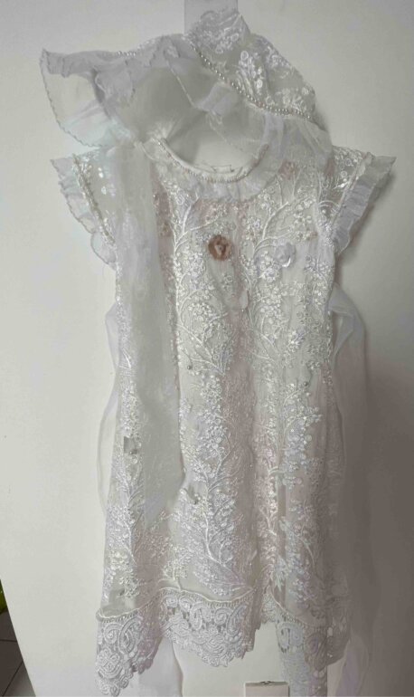 Hermosa batita blanca para bautizo, son detalles, sólo se usó para la ceremonia.