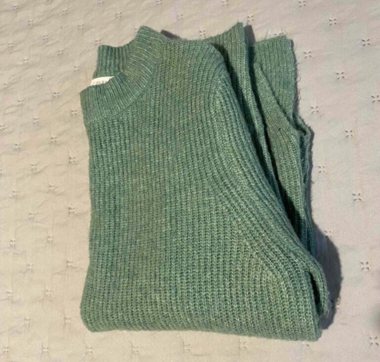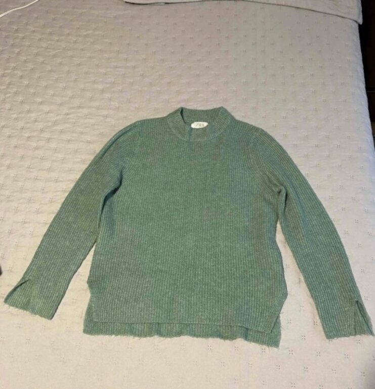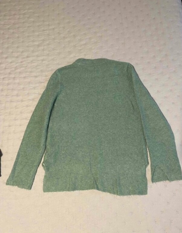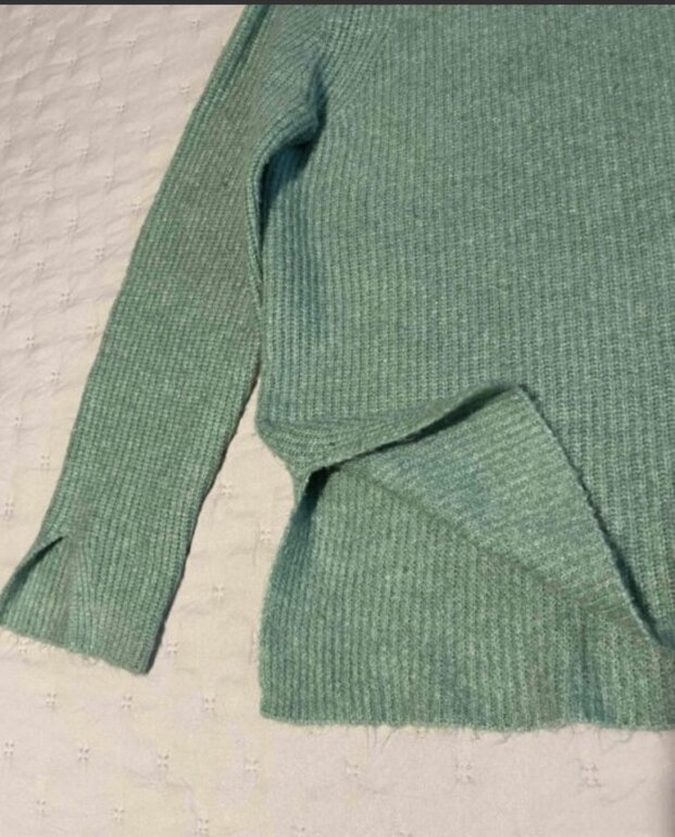 Suéter de hilo tejido suavecito, se siente delicioso al tacto 💕 y es hermoso tanto su forma como el color verde agua. Aperturas laterales en cuerpo y en mangas. Cero detalles,