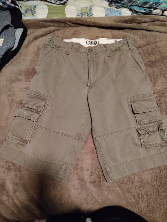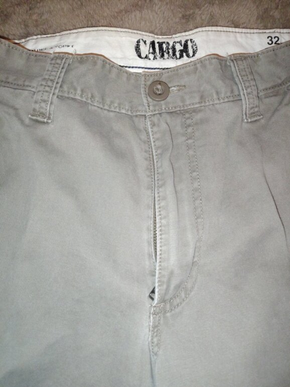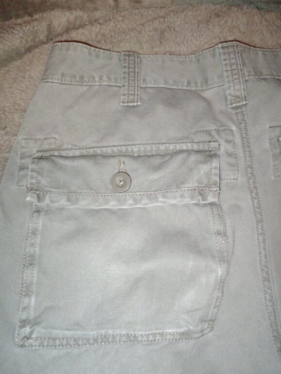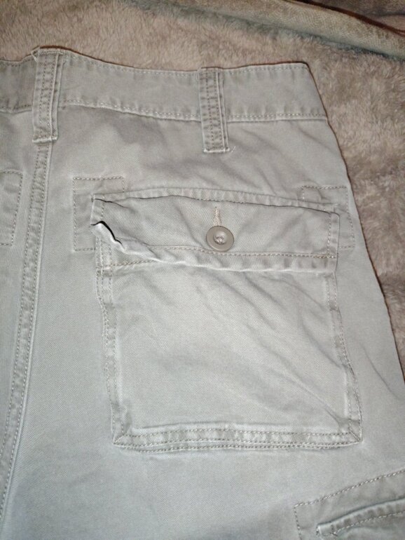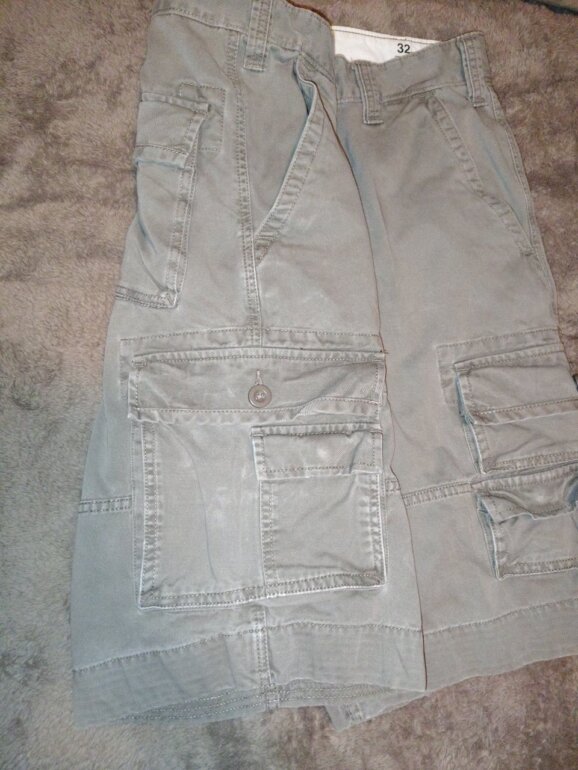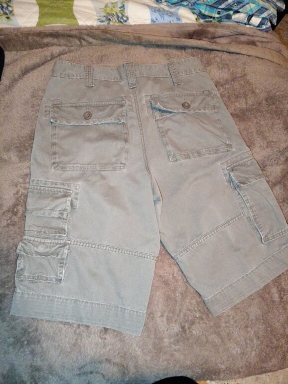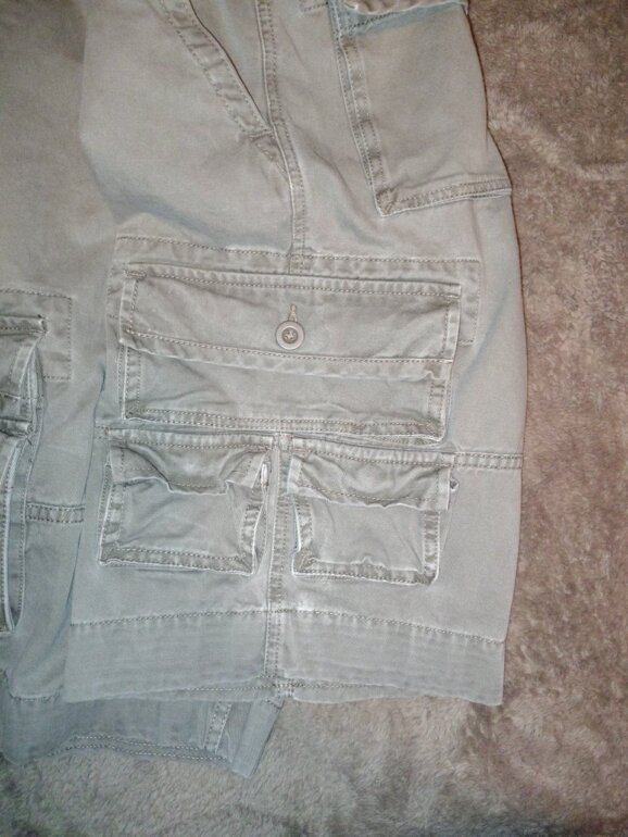 Bermuda de uso, conserva buena estética, la tela siempre fue tipo desgastada, cuánta con todos sus botones originales y cierre funcional.