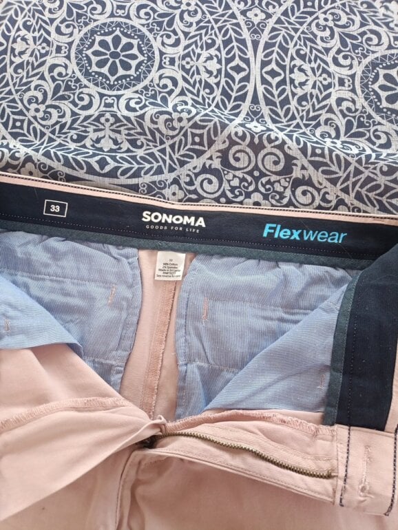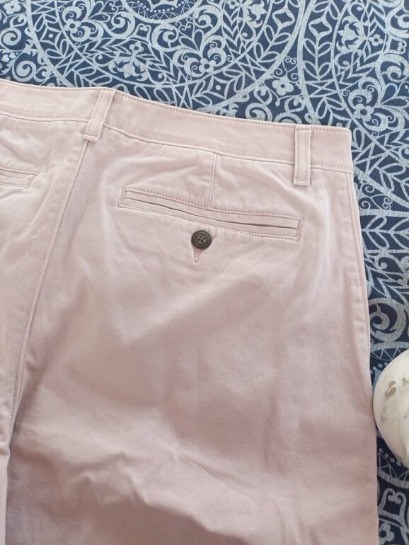 Bermuda de gabardina strech, color rosa, talla 33, flexwear, mide 42 cm de cintura y 54 de largo