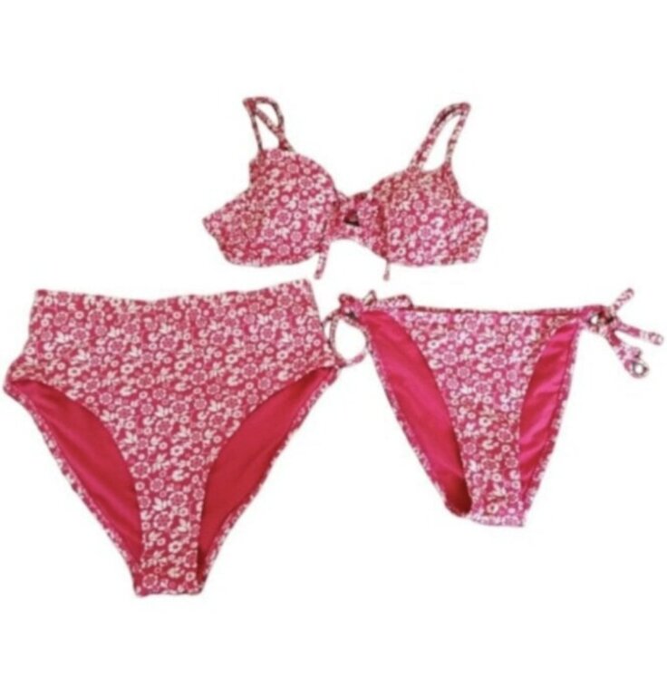 Bikini 3 piezas (dos bikini y un bra) NUEVO Marca That's It Talla S Color rosa con flores blancas Su precio en tienda es de $1200