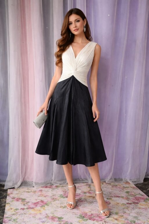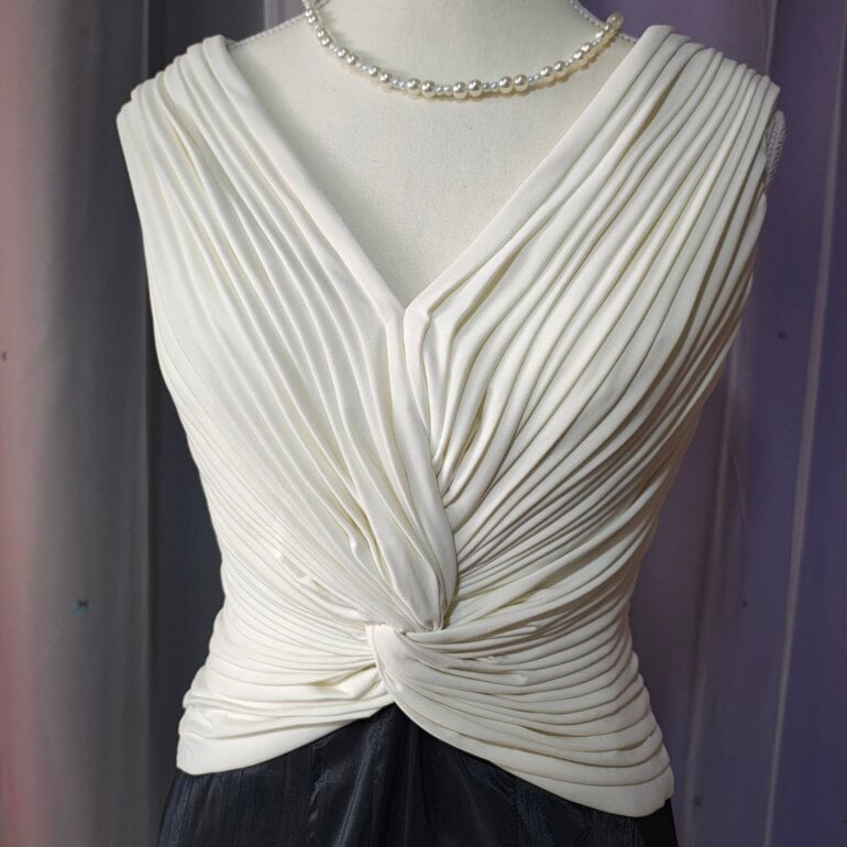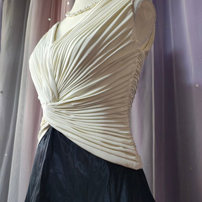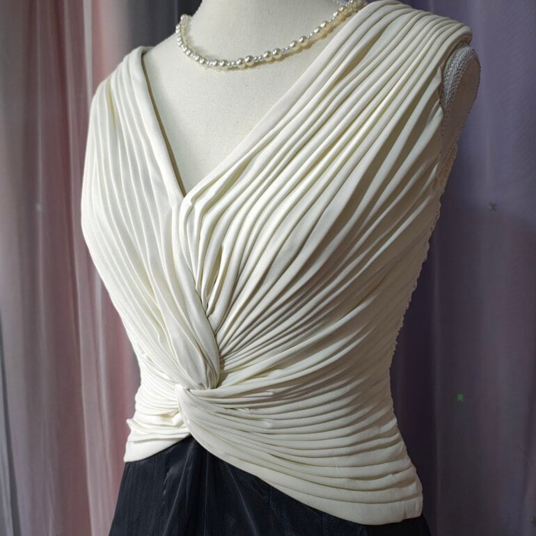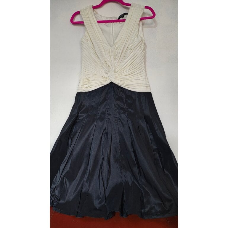 Hermoso vestido elegante tiene un diseño de pliegues en la parte del busto y cintura es hermoso la tela es gruesa no sé transparenta