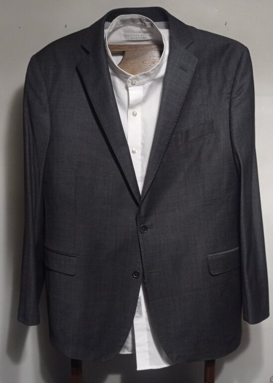 Blazer Brooks Brothers color gris oscuro talla 42 R slim y su precio de venta en tienda es de $12,000 pesos MX