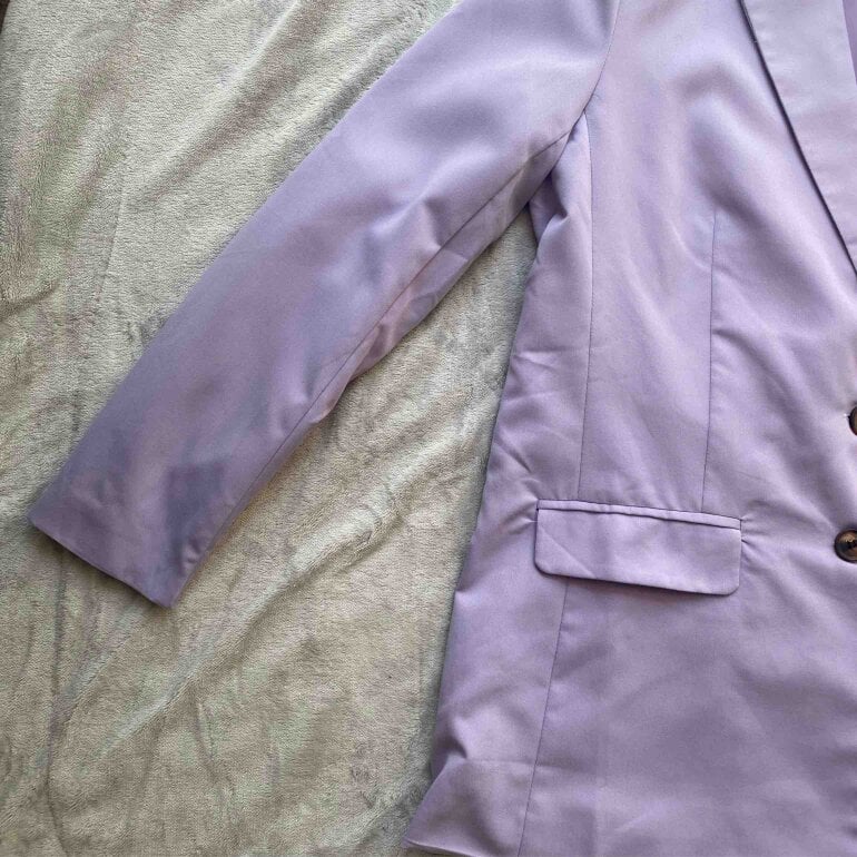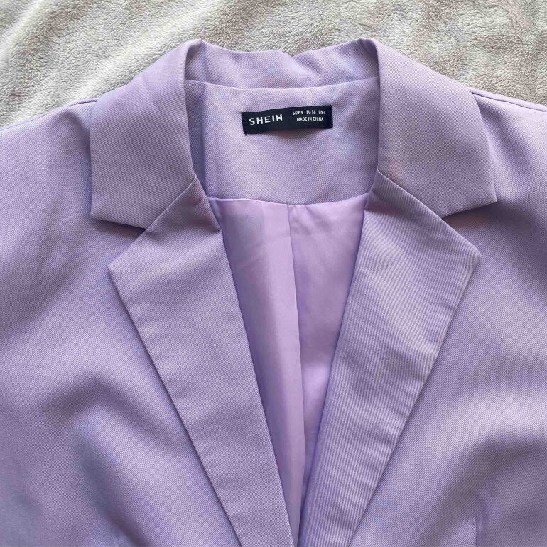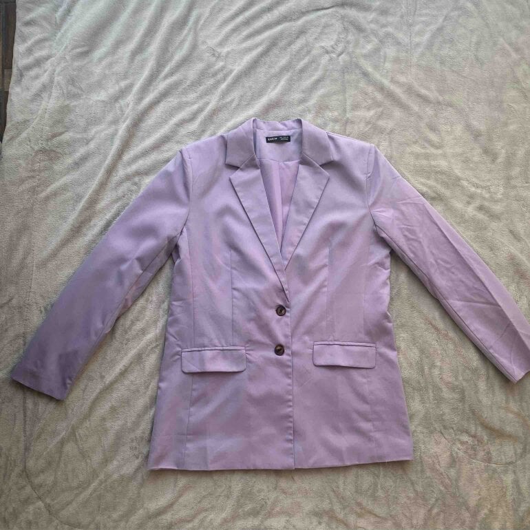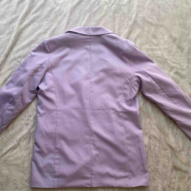 Hermoso blazer color lila, la tela es ligera. Se encuentra en buenas condiciones, solo se uso una vez. Es amplio y queda hasta talla M