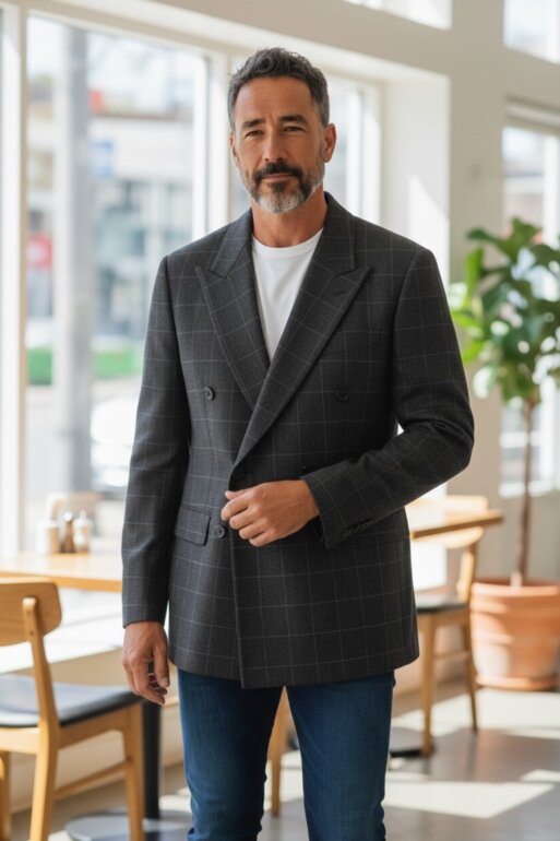 Blazer cruzado Jones New York tipo abrigo ligero. Talla 40L. Hecho en República Dominicana. 100% lana gruesa. Medidas: pecho 53 cm, hombros 43 cm, manga 65 cm, largo 77 cm. Estilo estructurado elegante. Requiere ajuste interno de costura. Estado ideal, como nuevo.