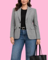 Blazer de mujer gris (cuadro chiquitito negro y blanco) a estrenar sin etiqueta en perfecto estado, talla 12 marca Le Suit con medidas 54 cm de axila a axila y 62 cm de largo.