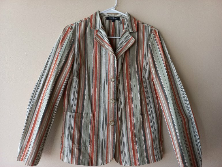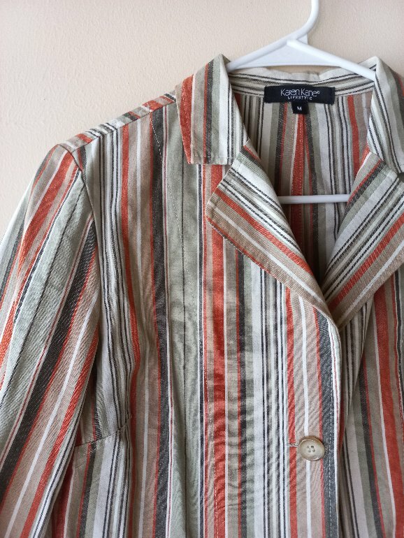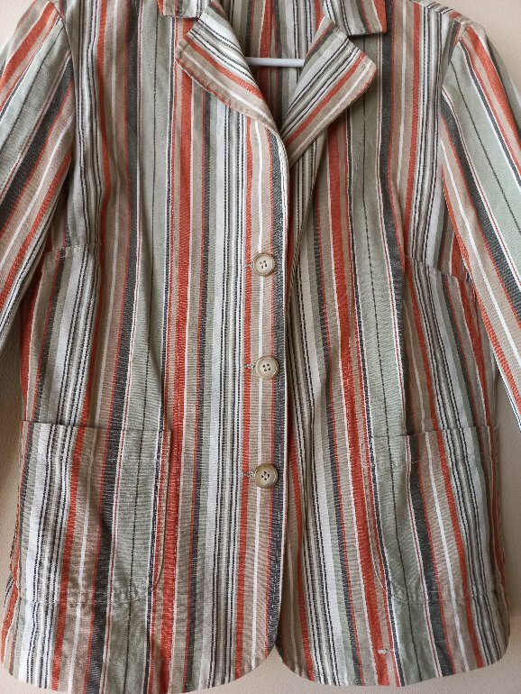 Blazer muy vintage a rayas, el color del diseño es así, medio tenue o deslavado (no es por el uso o desgaste). Para medidas con confianza en los comentarios 💓