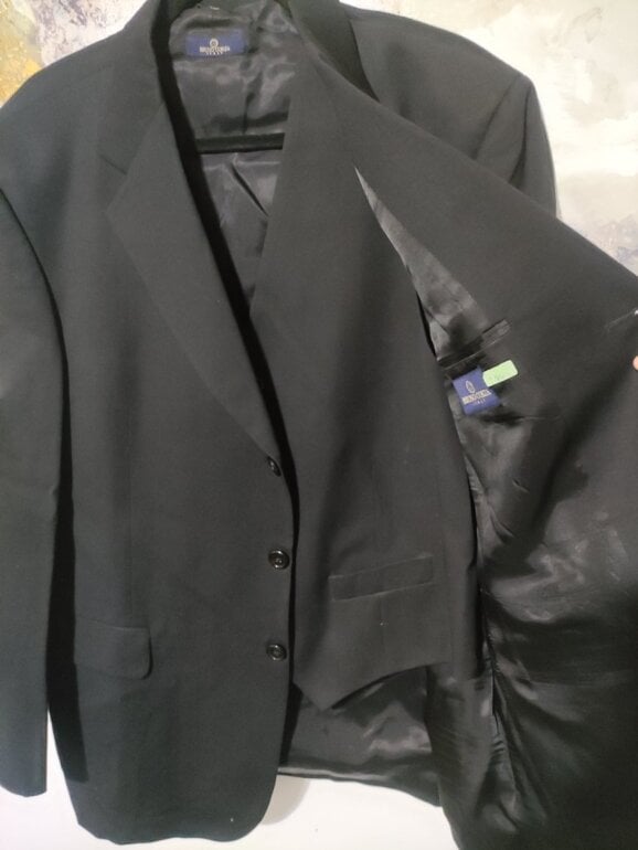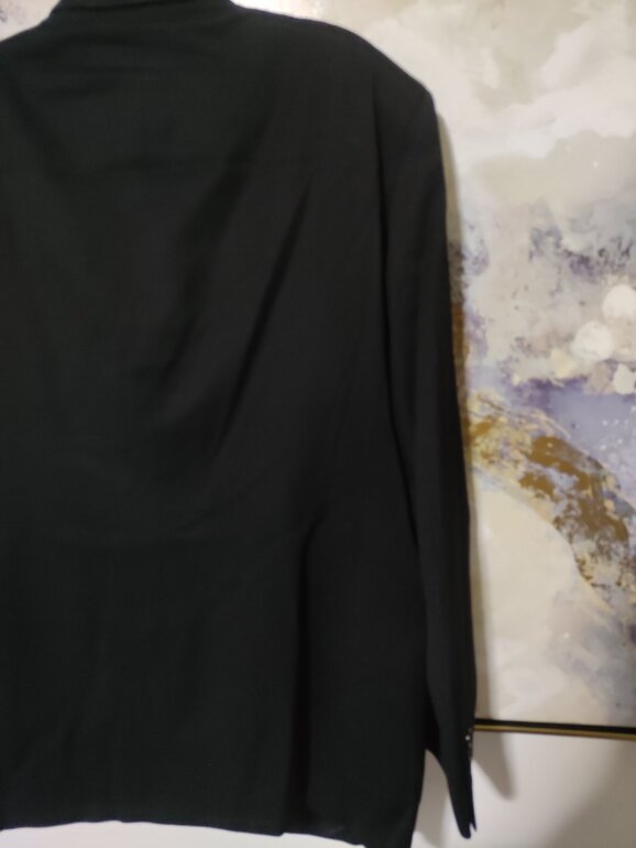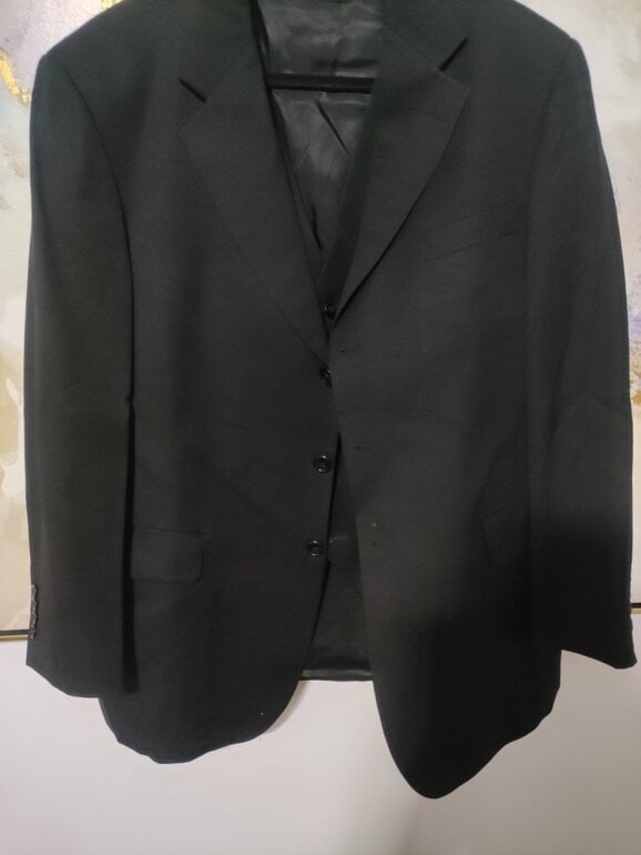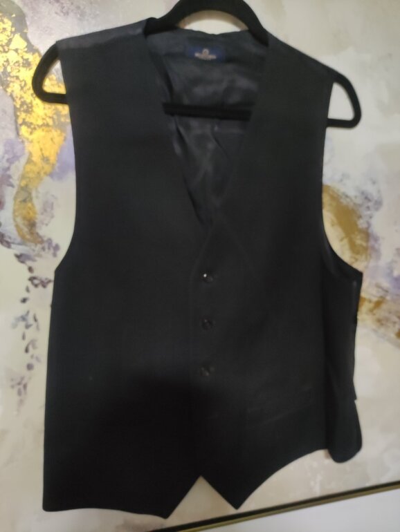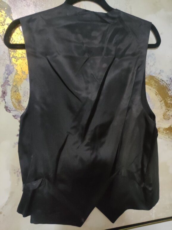Blazer y chaleco de caballero, color negro. Sin manchas ni decoloración (efecto de luz cualquier seña en fotos) sin desperfectos. Buena calidad de tejido, composición de lana pero no muy cálido. Talla XL. EnvÃo con protector de traje. Medidas aprox blazer hombro/h 50cm., axila/a 60cm., largo 80cm., chaleco axila/a 57cm., largo 60cm. 🖤✨DISPONIBLE