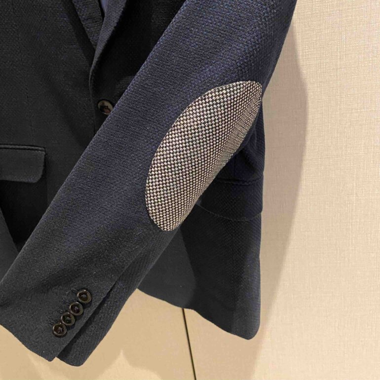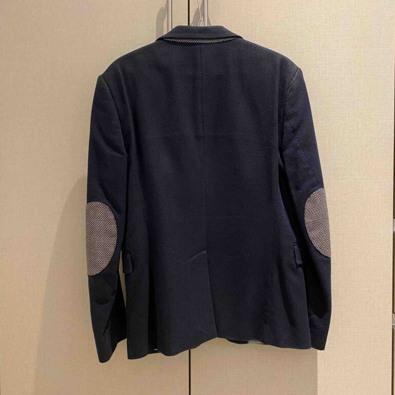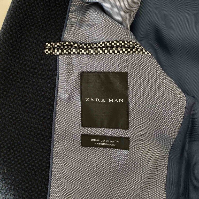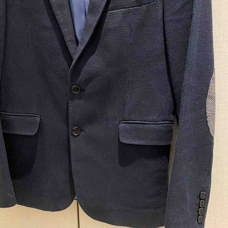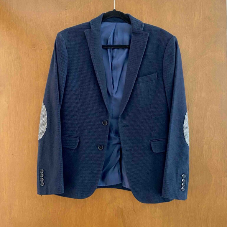 Blazer Zara azul marino, 1-3 puestas, tiene forro y bolsas internas, lleva coderas color gris con textura en cuadros