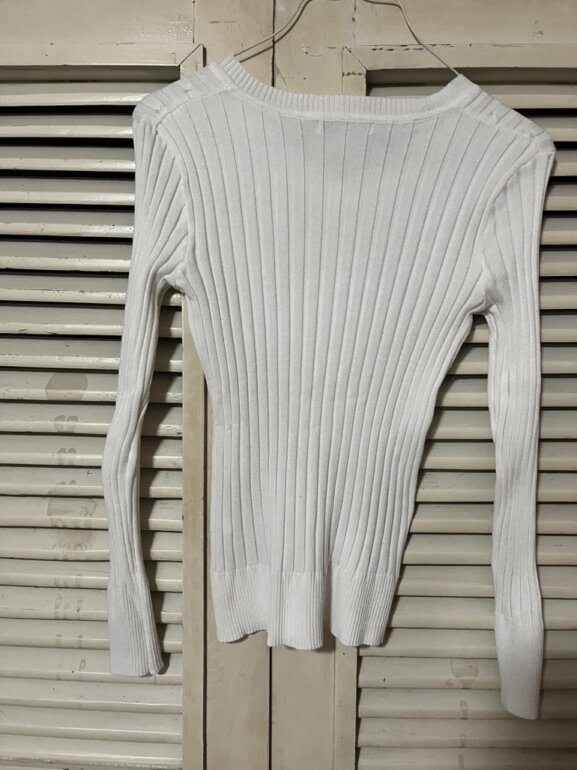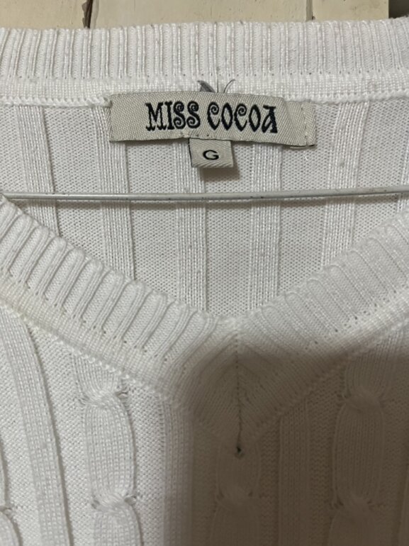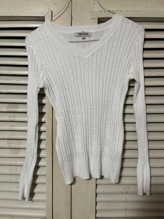 Bonita blusa blanca tejida talla grande, escote en v, cómodo, sin detalles.