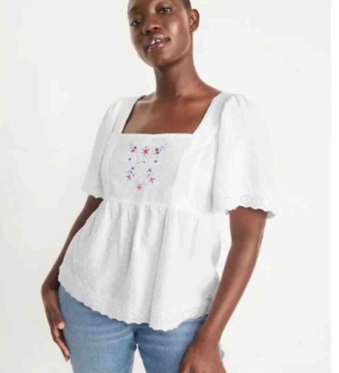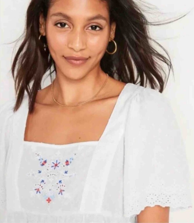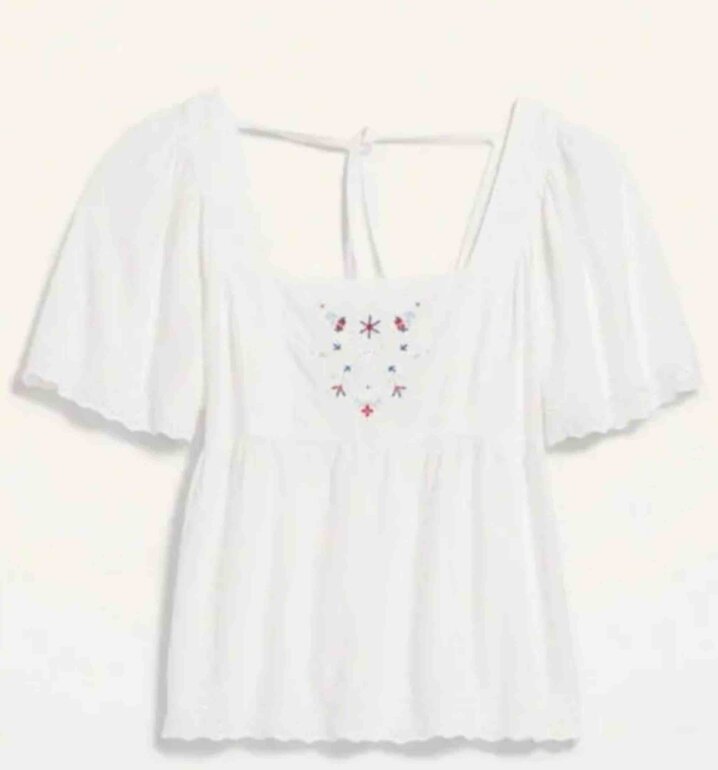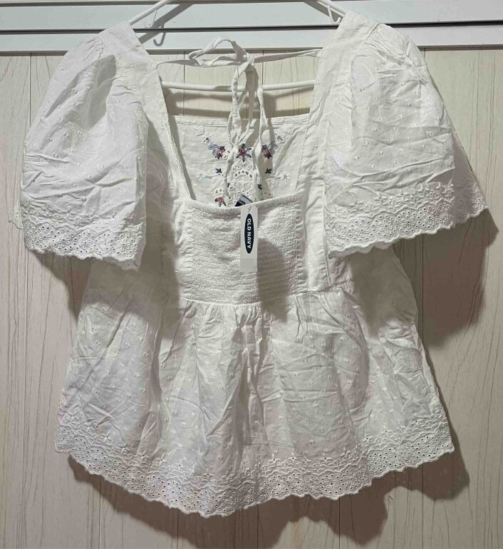 Hermosa blusita con detalle bordado, marca Old Navy, está muy linda y fresca, talla XS, nueva con etiqueta!
