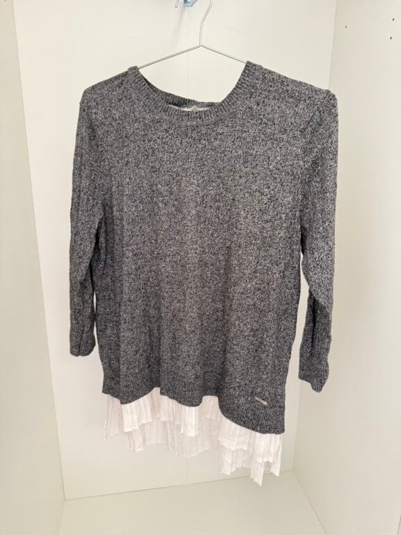 Blusa manga larga Calvin Klein, con otra tela debajo para dar un look más formal. De segundo uso, el único detalle es que la tela blanca debajo está ligeramente percudida. Talla L. Visita mi perfil para más prendas✨
