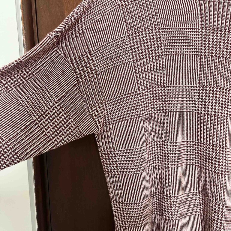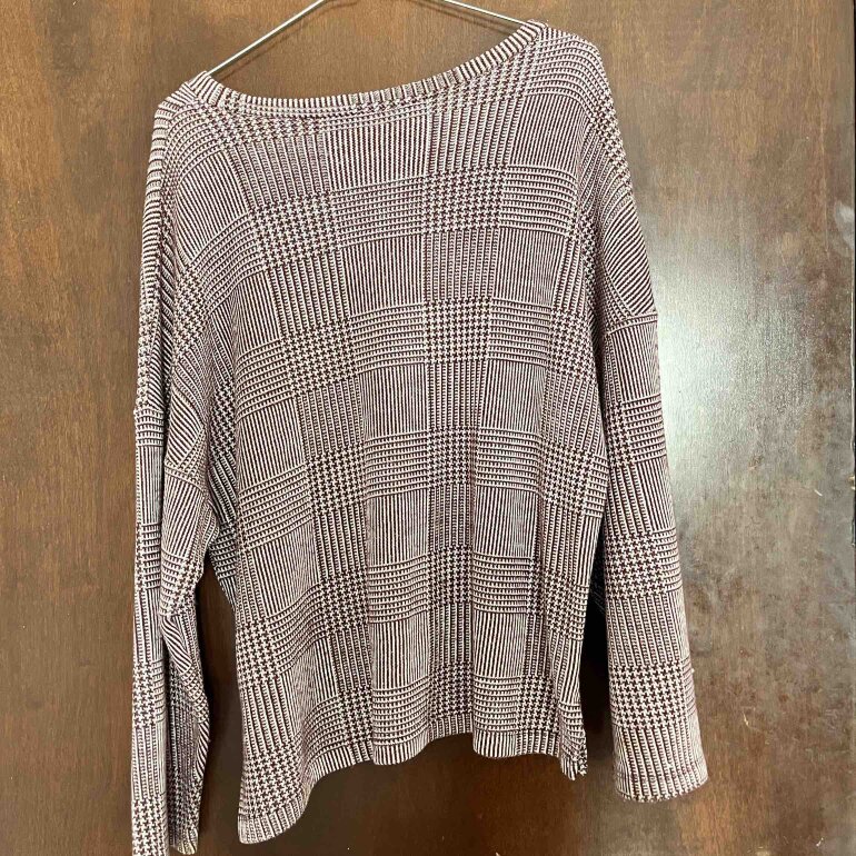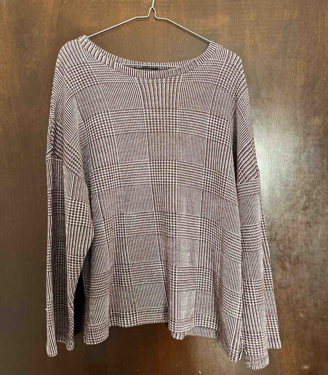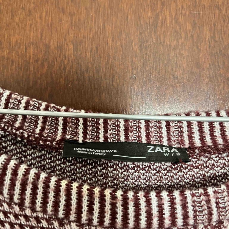 Blusa de manga larga que queda aguada, es talla M de Zara. Es color rojo vino con blanco.