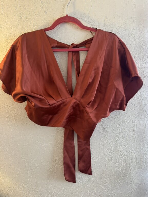 Blusa satin color Marron , talla M , marca Zara. Espalda descubierta con listones , con detalles en fotos