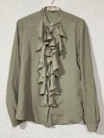 Hermosa blusa con olanes las medidas son Hombro 40 cm Axila 52 cm y largo 69 cm esta sin detalles