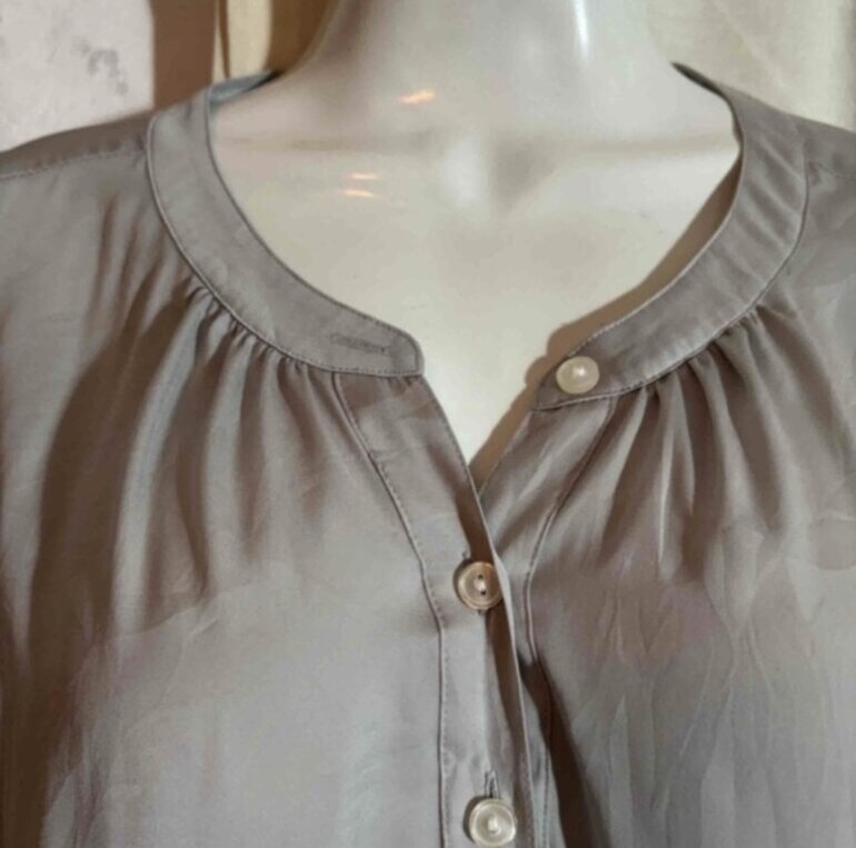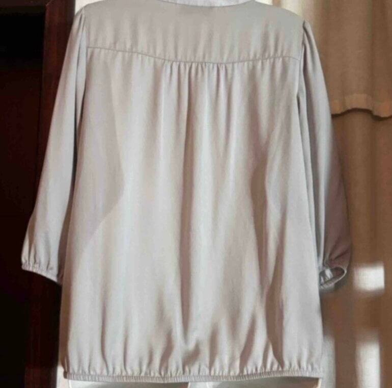 Blusa de gasa 100% poliéster de excelente calidad, cuello Redondo con botones al frente, manga 3/4 con resorte y parte baja con resorte muy ligero, mide de axila a axila 49 cm, no estira, puede usar en una variedad de ocasiones, desde entornos casuales hasta profesionales