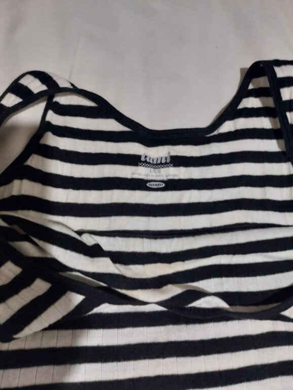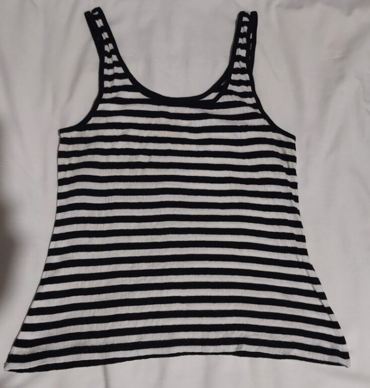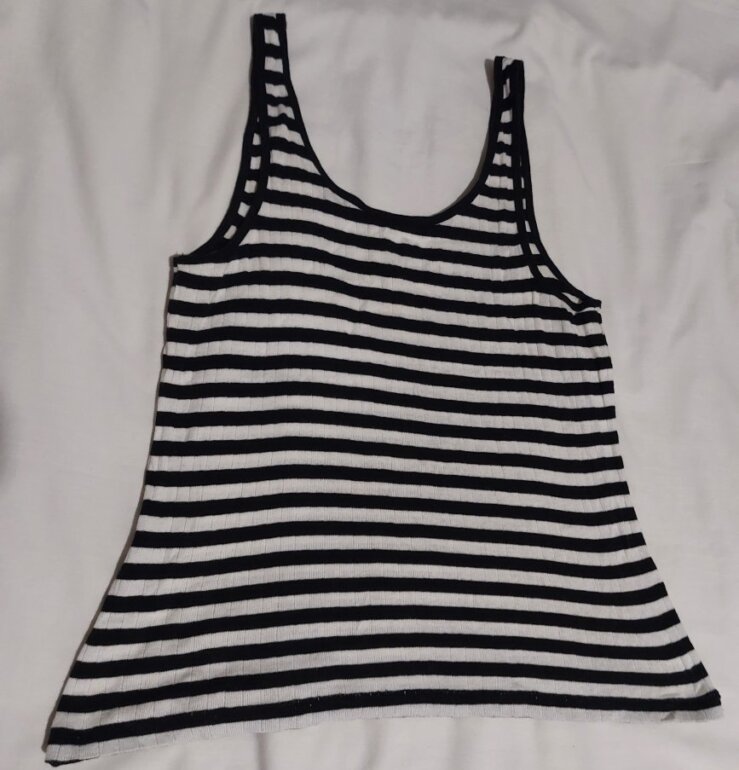Blusa para dama, en buenas condiciones, talla #G, color blanco/marino, 100% de algodón.