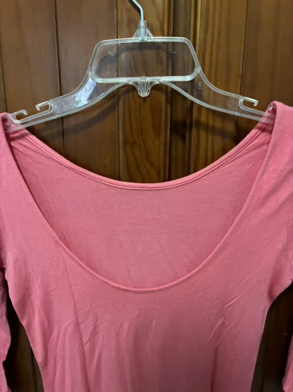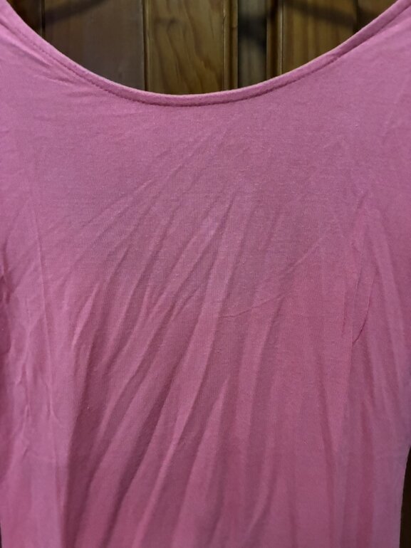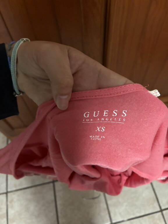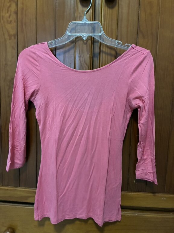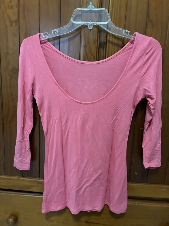 Blusa rosa pegada de la marca Guess, talla XS, con escote redondo en la espalda color rosa