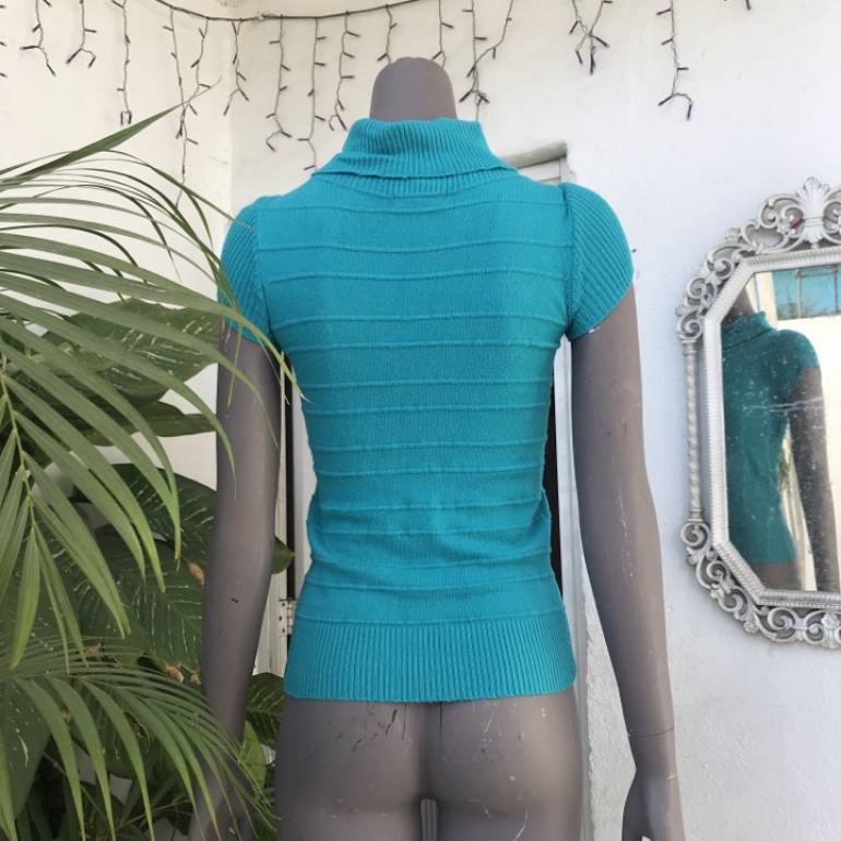 Bonita blusa de punto tipo suéter, cuello alto y manga corta.