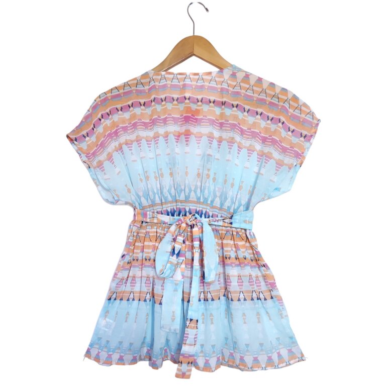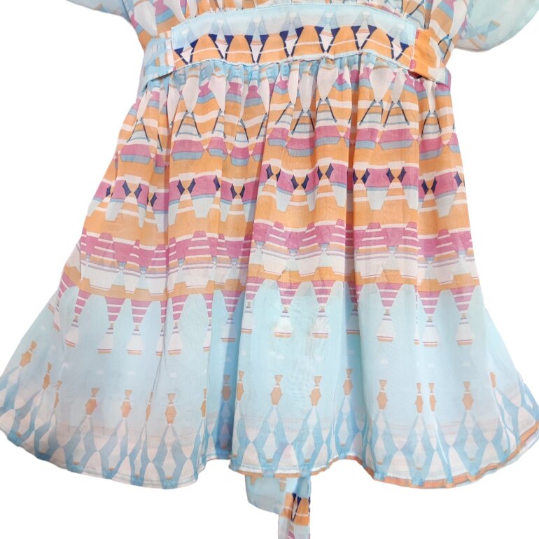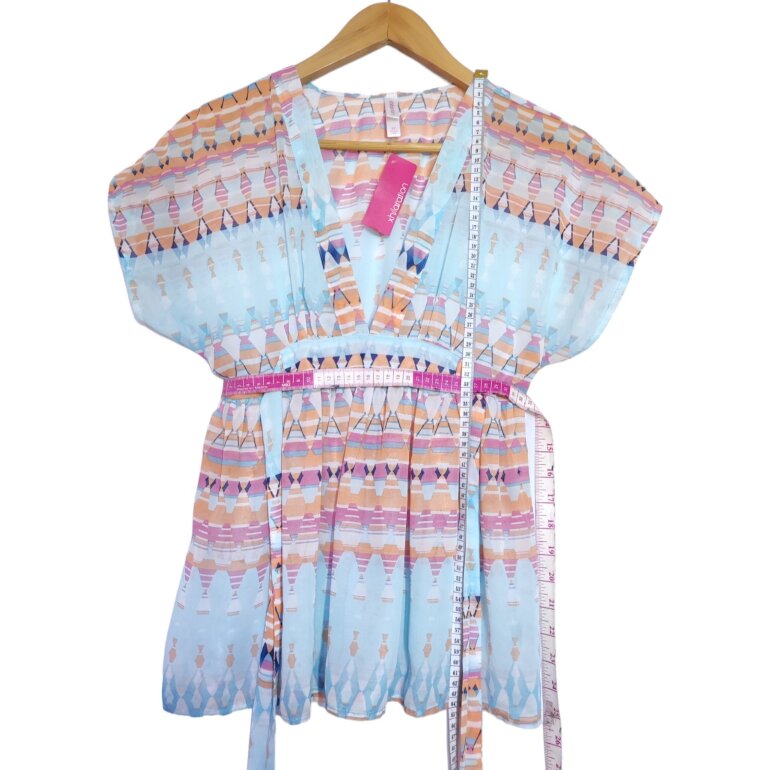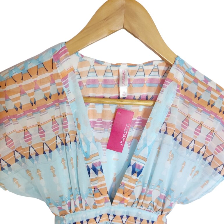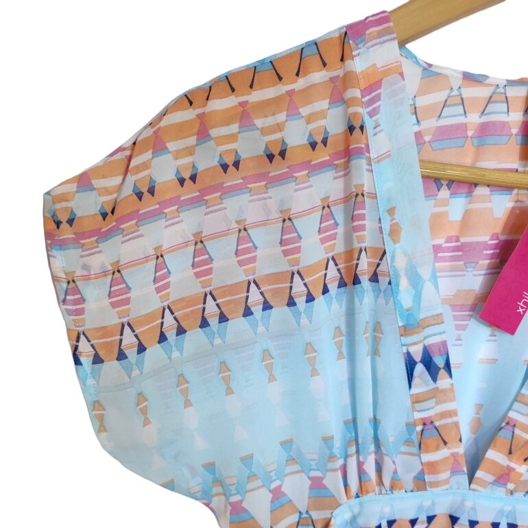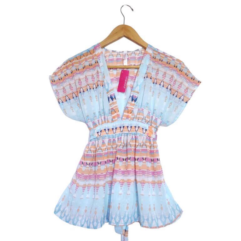 Linda blusa Xhilaration tono azul cielo con naranja, fresca y ligera. Es nueva con etiqueta, sin embargo, tiene unas pequeñas marcas de tinta en la parte trasera que prácticamente no se notan.