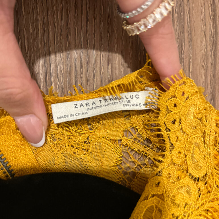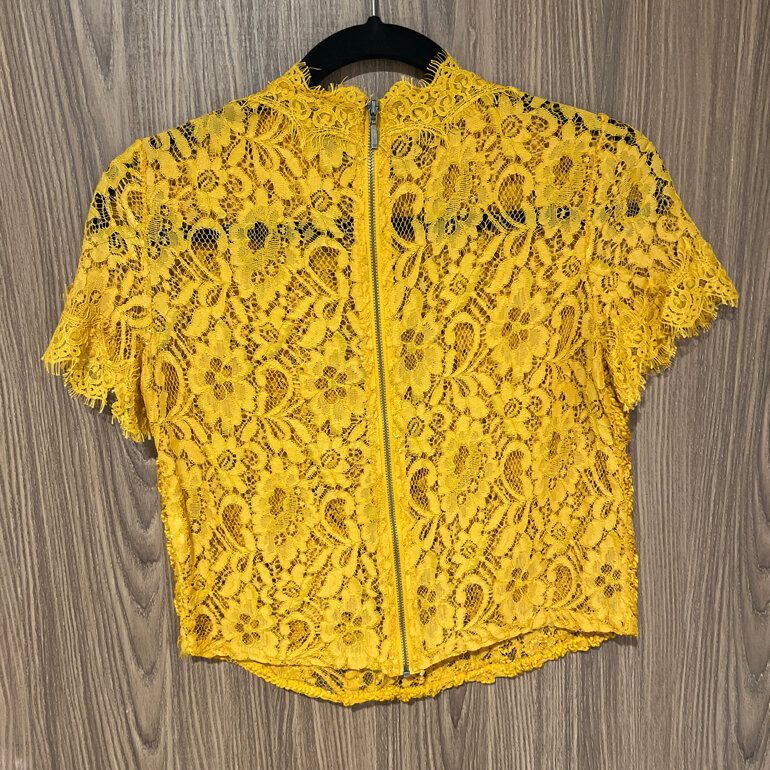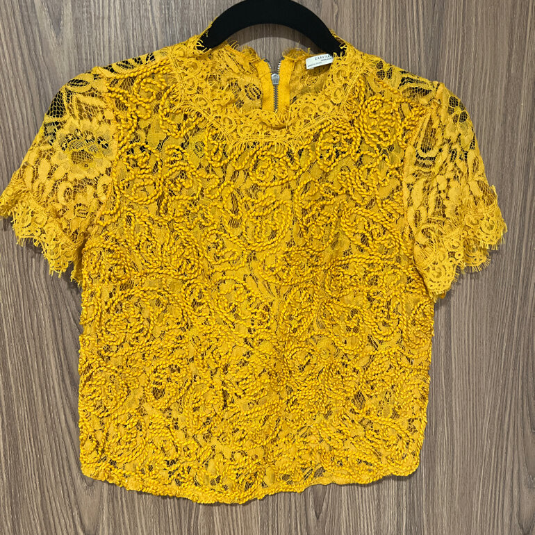 Blusa amarillo mostaza, de zara. Seminueva de encaje. Semi-cropped.