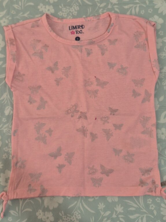 Detalle en unas blusitas manchitas de pintura y despintado el corazon.
