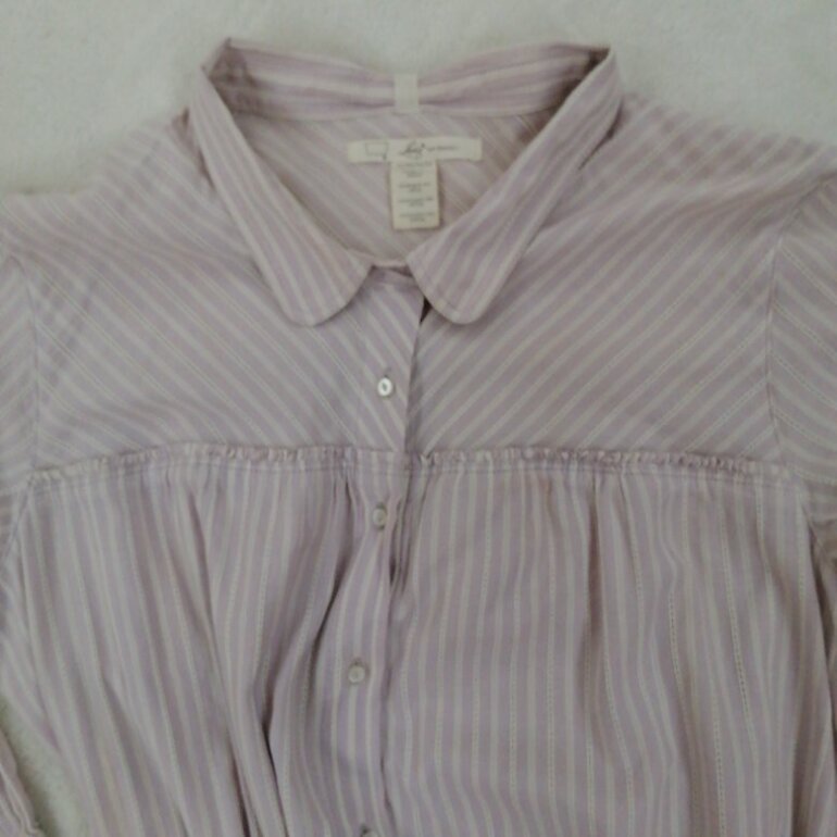 Hermoso bluson, levys en tonos rosados lilas con tela de rallas y hermosos bordados en blanco