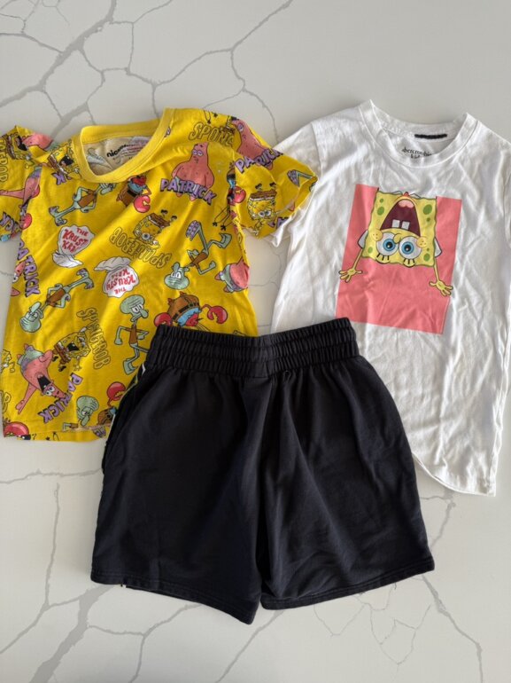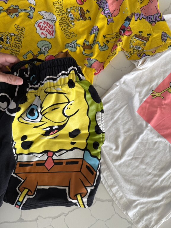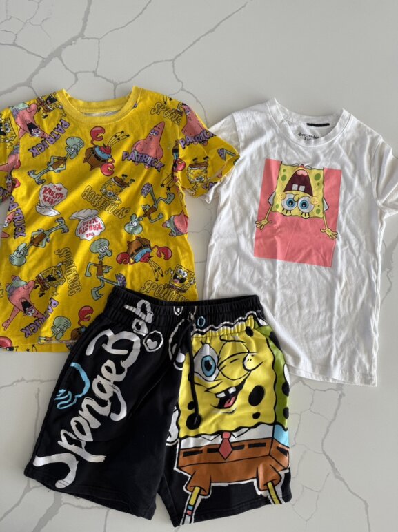 Paquete Bob sponja incluye tres prendas marcas de tienda un shot y dos playeras