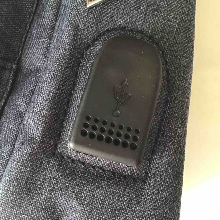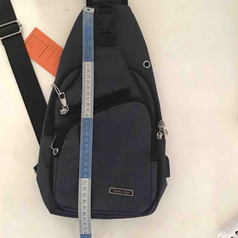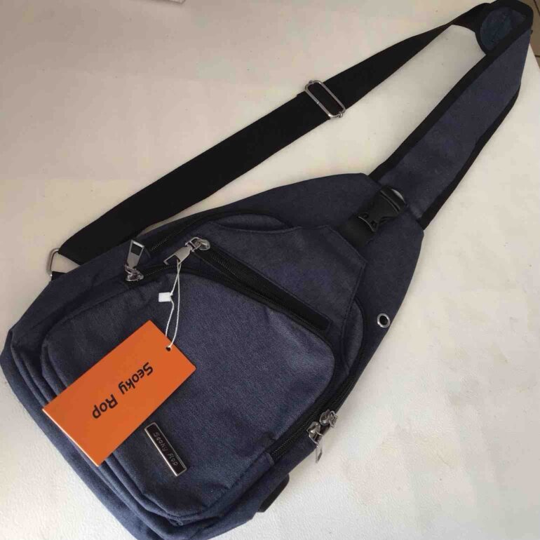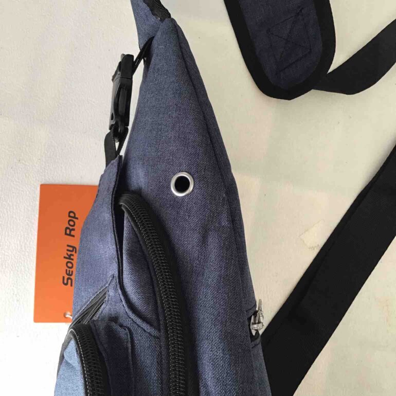 Bolsa bandolera cruzada multi usos de marca Seoky Rop con Orificio USB y orificio para auriculares, diseñado tanto para hombre como para mujer, cable incluido para carga de dispositivo(banco de energía no in luido) medidas aproximadas altura36.5 cm➖ancho 18 cm➖profundidad 7 cm, azul gris.