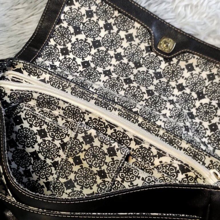 Bolsa de piel en color negro con interior con bonito diseño y múltiples compartimentos, de excelente calidad den un estilo clásico perfecto para outfits elegantes o semi formales. Los accesorios siempre van a ser un plus para tus outfits, y que mejor que una bolsa de mano de piel y más de esta marca, personalmente está marca me encanta. ¡Que no te la ganen!. Sin detalles.