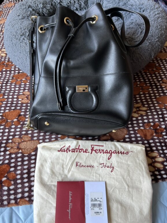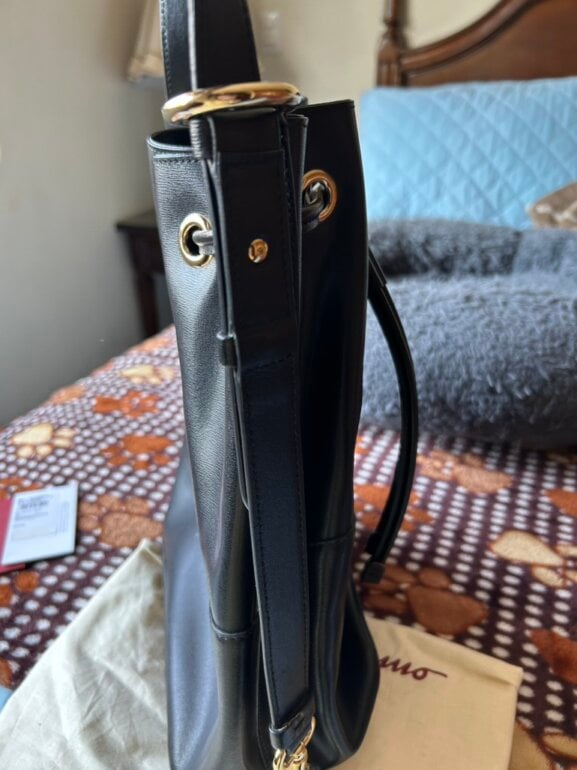 Bolsa Ferragamo tipo bucket, Gancio XL color negra, piel, nueva con etiquetas.