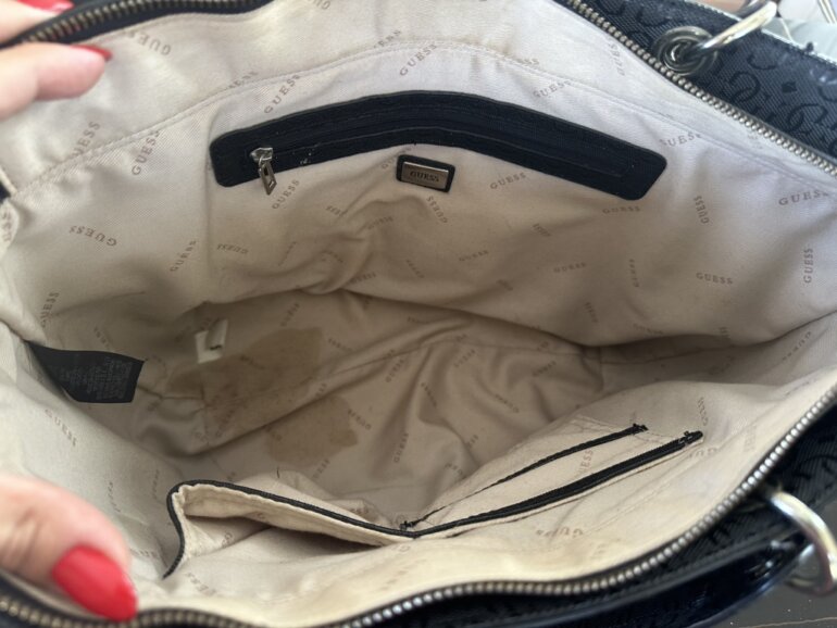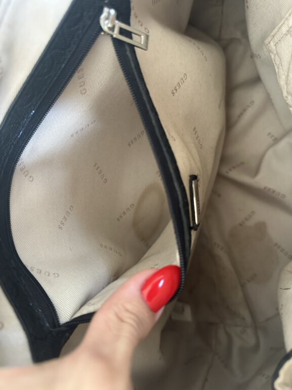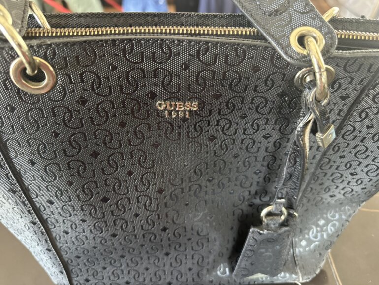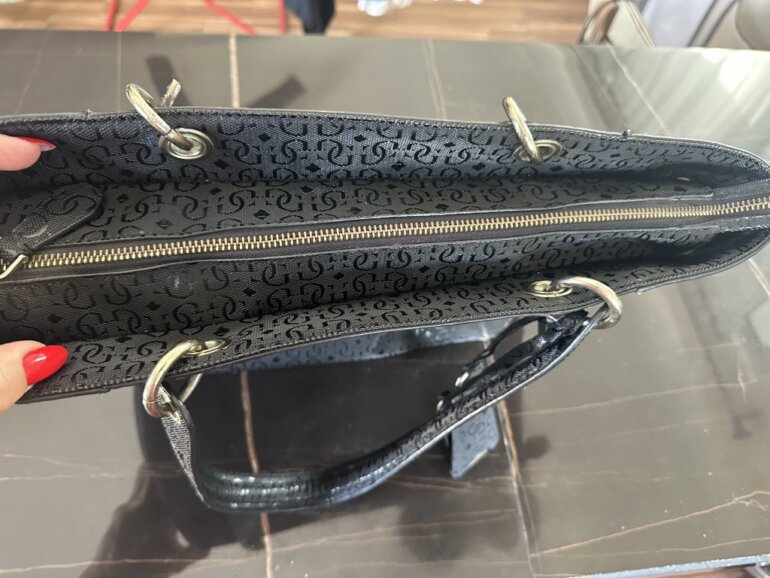 Bolsa color negro marca guess, semi nueva , tiene un par de manchitas en el interior (por uso). Y un detalle en su colgante de adorno (se muestra en la foto)