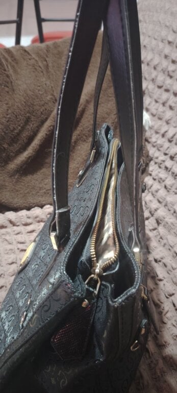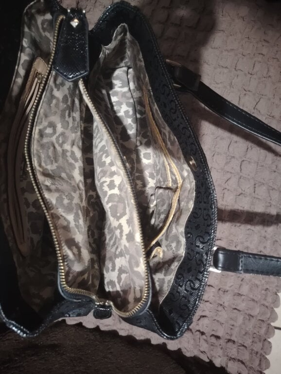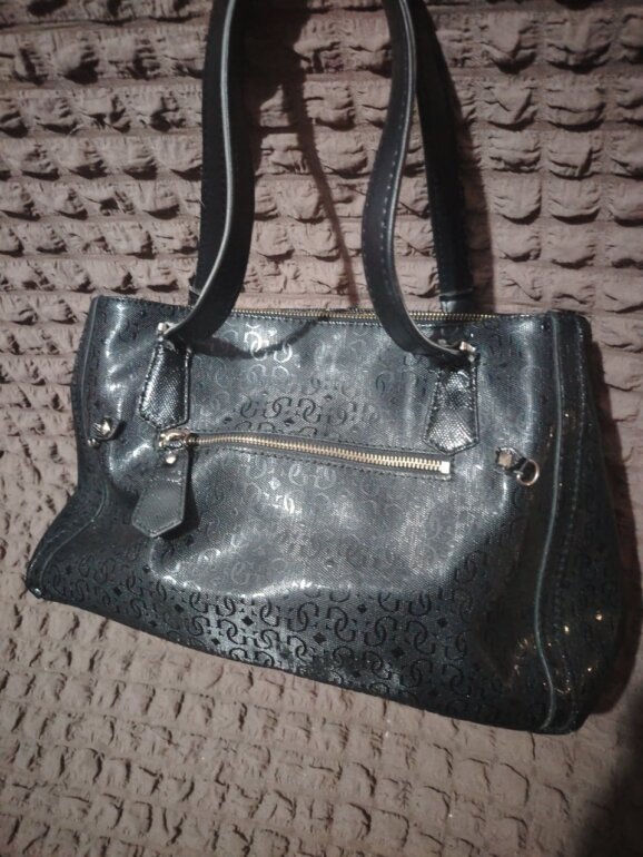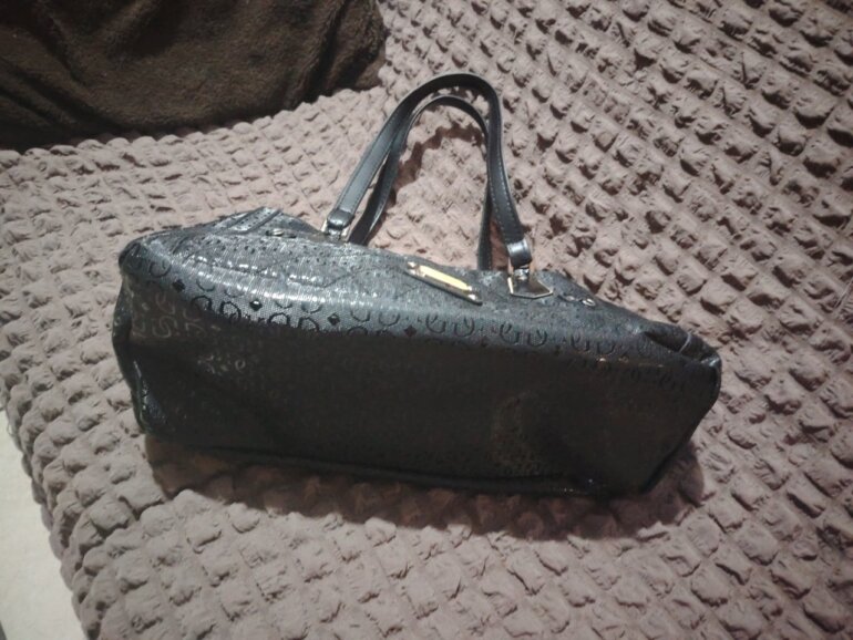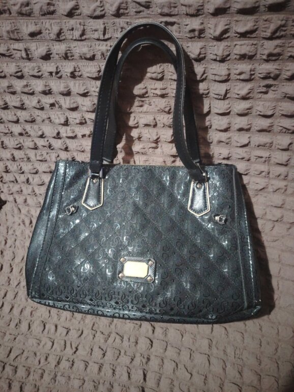 Hermosa bolsa Guess negra tipo charol, detalles de uso muy leves desapercibidos, excelentes condiciones, 3 compartimentos