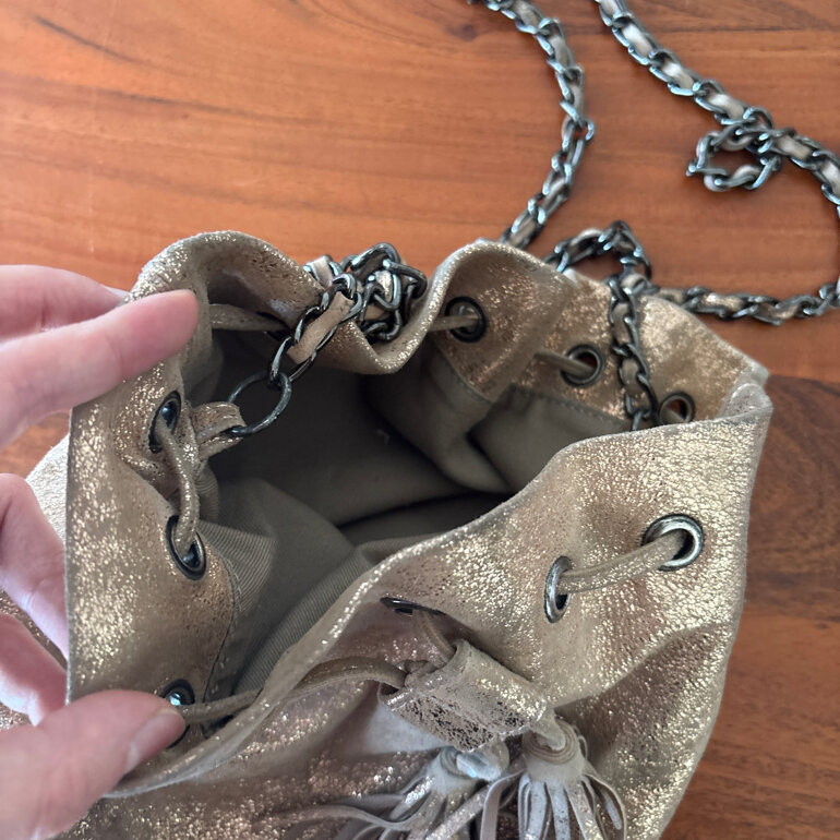 Hermosa bolsa 100% de piel color rose gold. Combina con todo y es super practica. La puedes usar casual o hasta para una boda :)