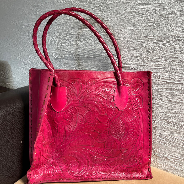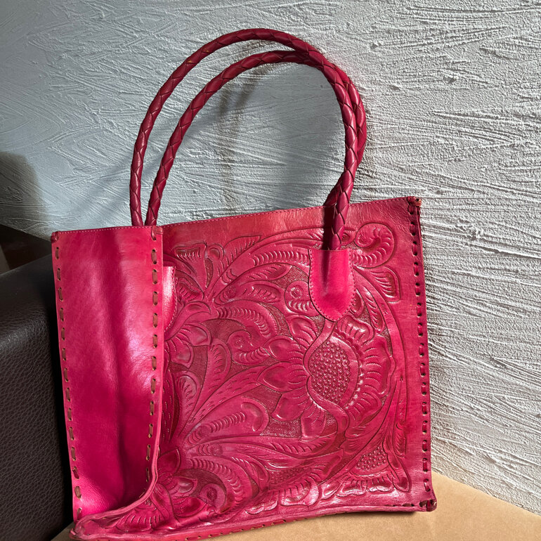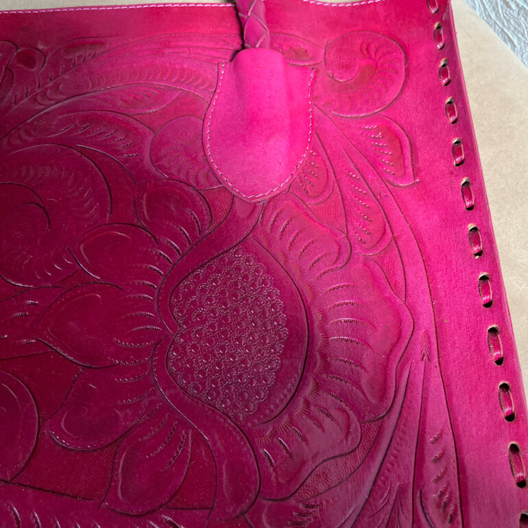 Bolsa de piel hecha en México color rosa mexicano