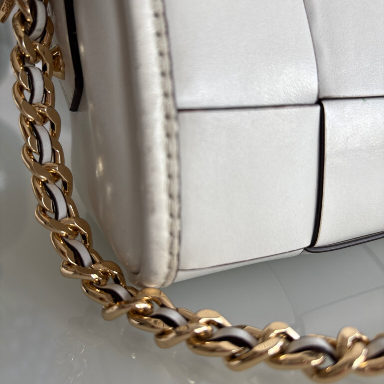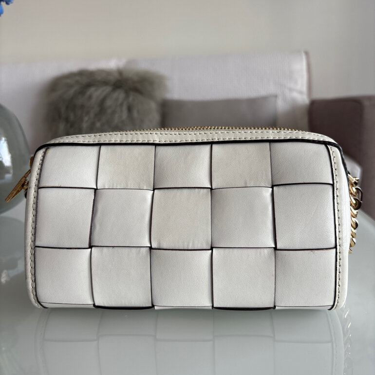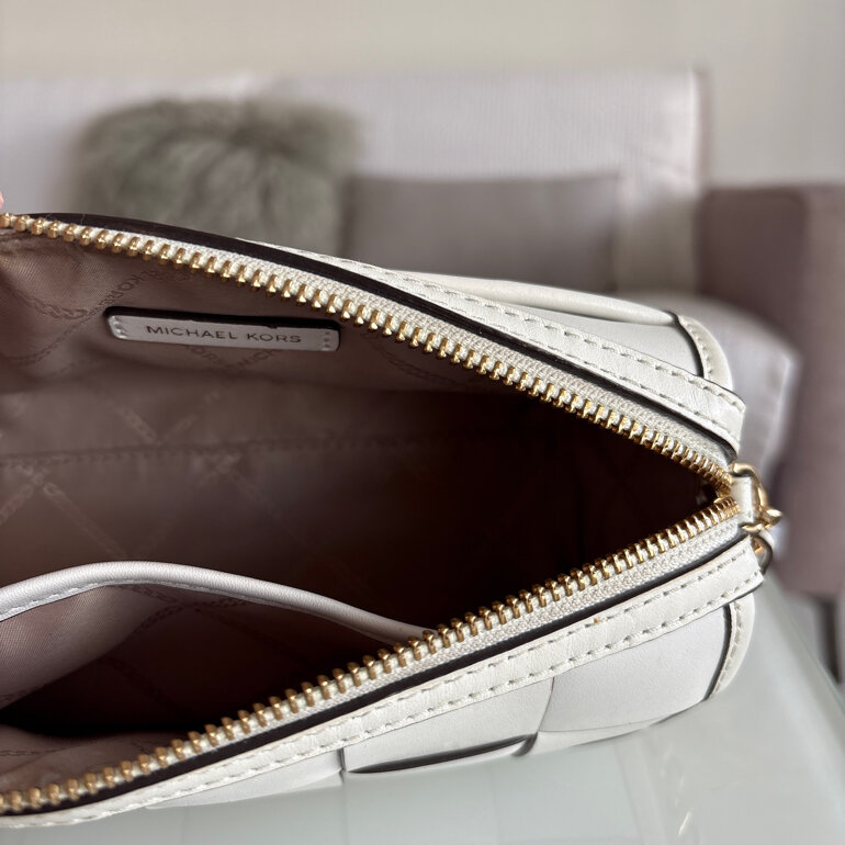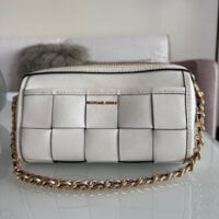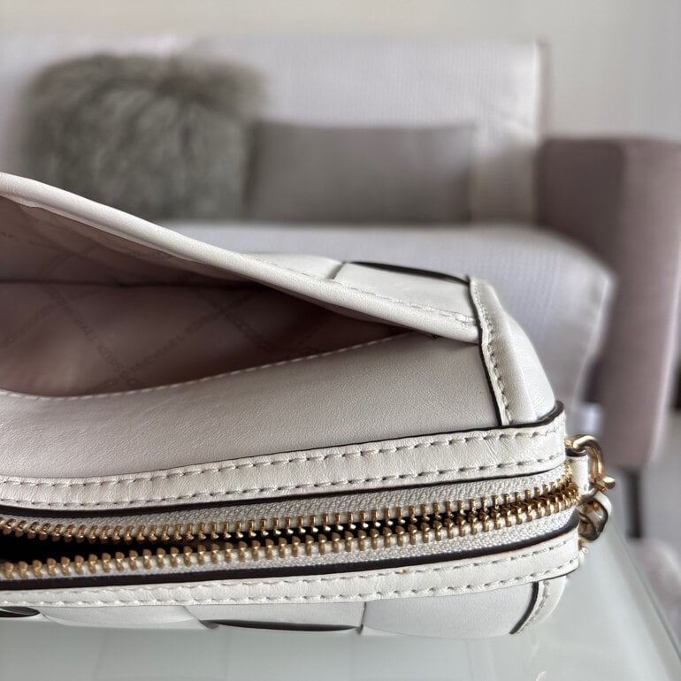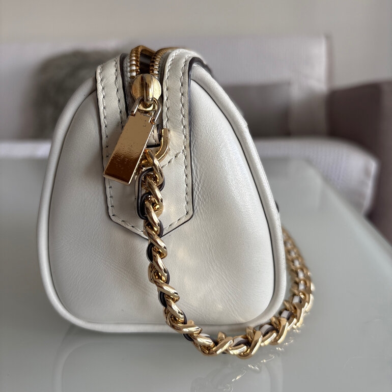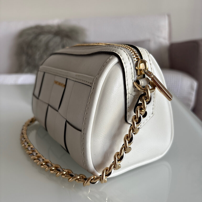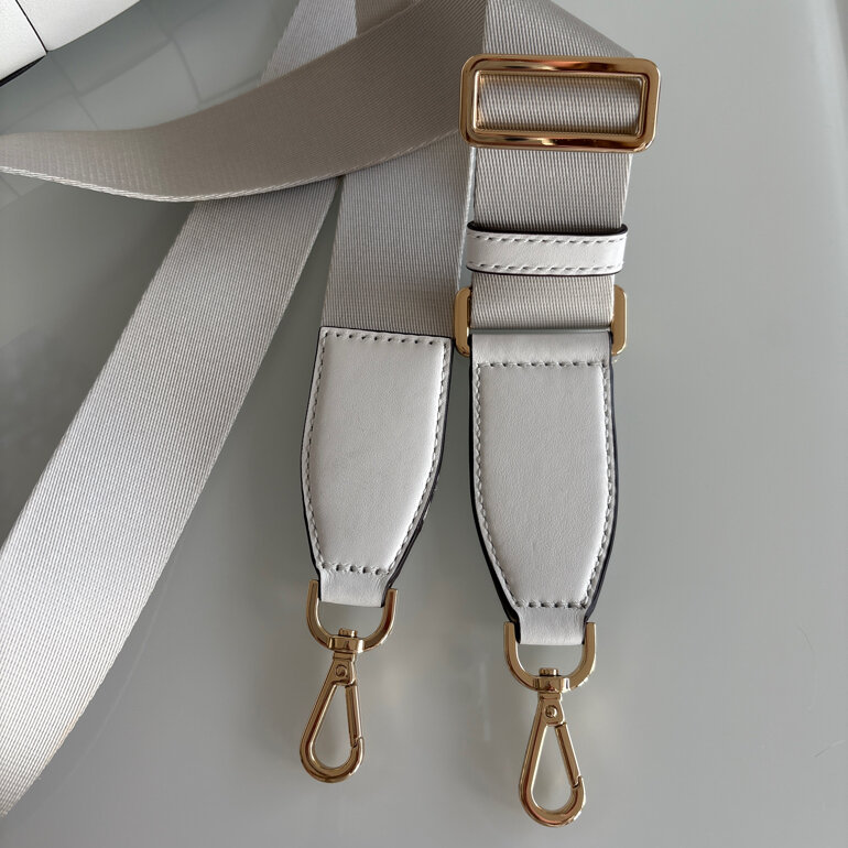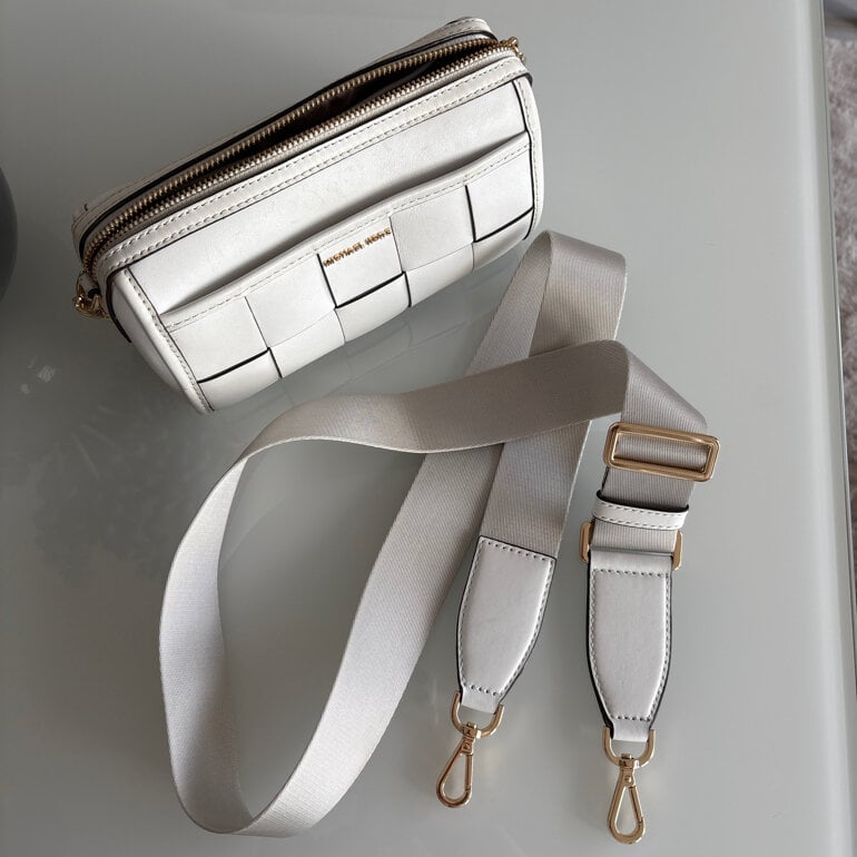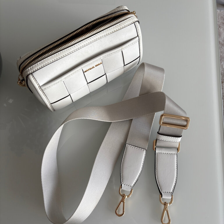 Es muy coqueta, bonita y moderna! Color blanco con dorado y viene con un otro cinturón para poder cambiar y usarla en diferentes formas !