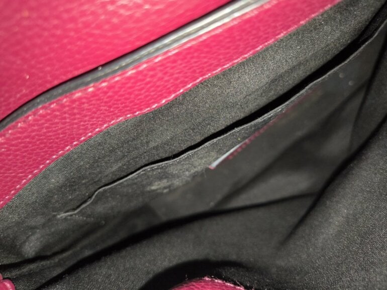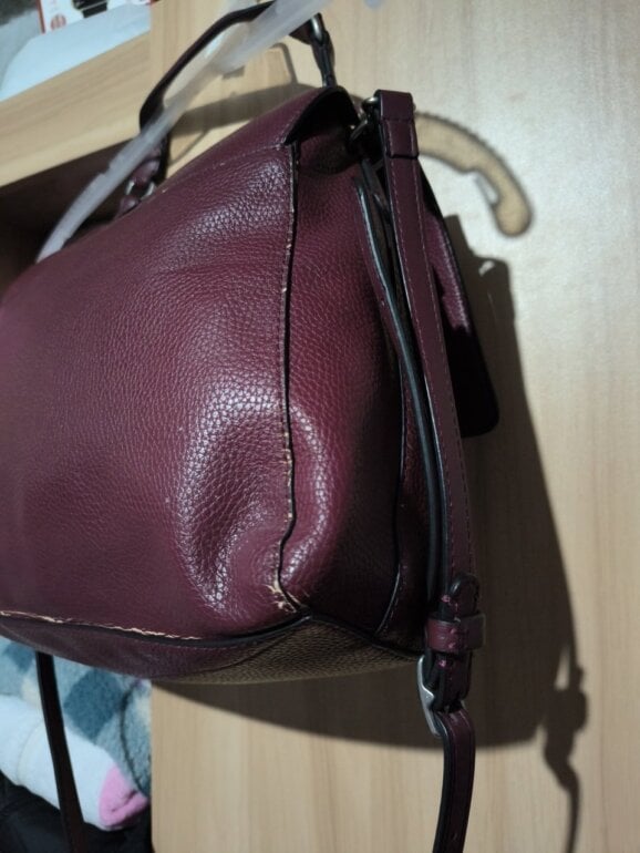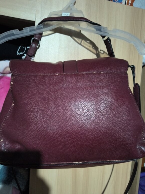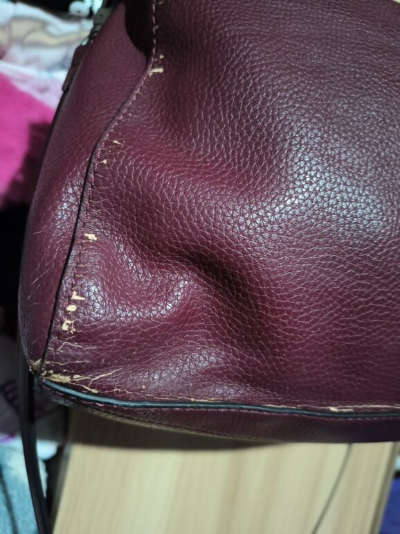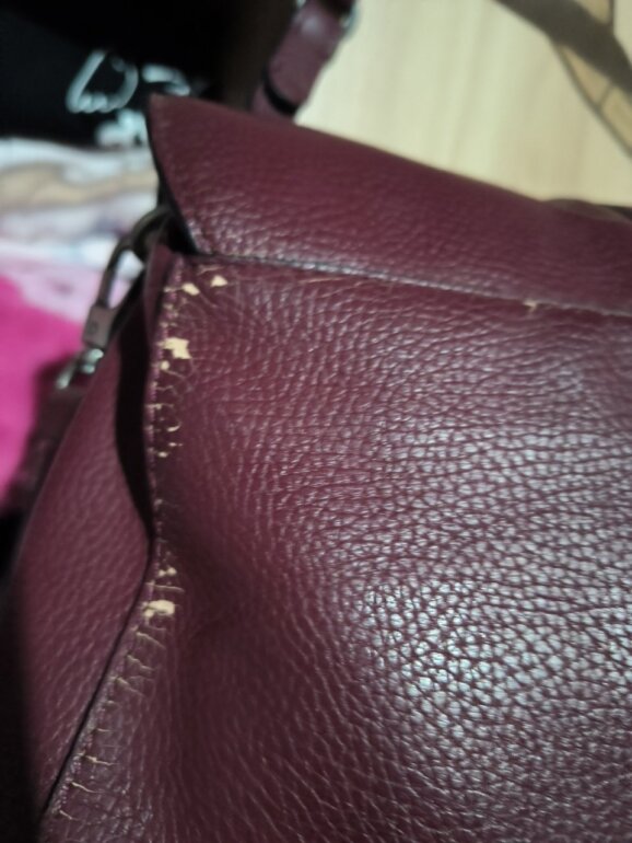 Bolsa de piel, con algunos detalles que la verdad no afectan su uso pero si son visibles, son más de haberse guardado que del uso por dentro está intacta, tiene correa corta y larga