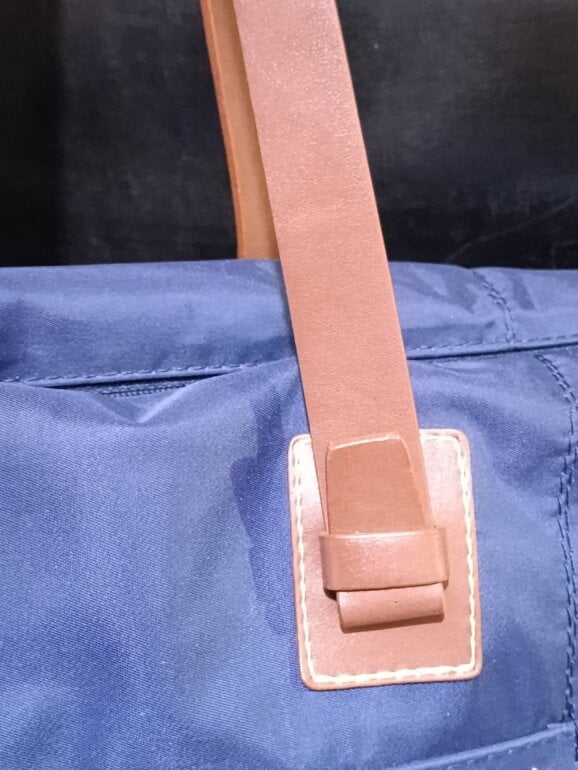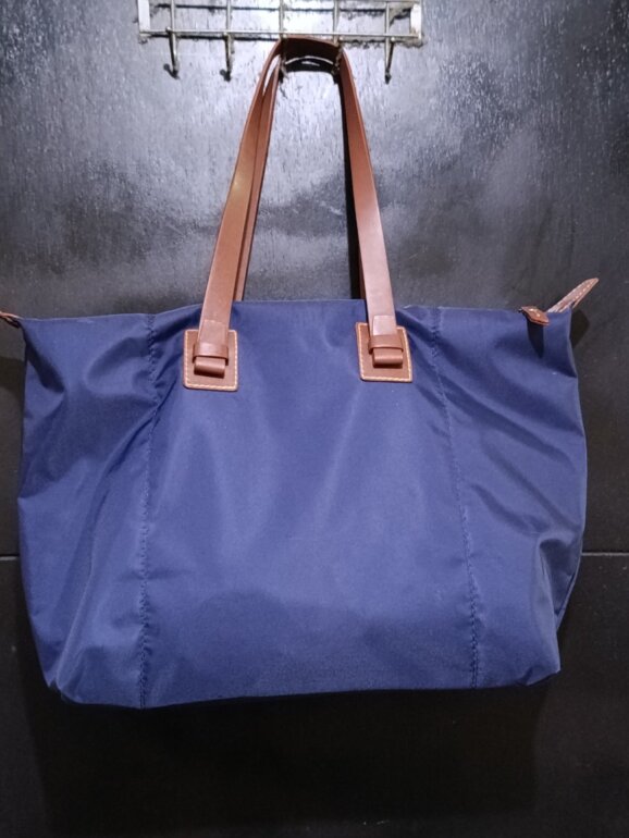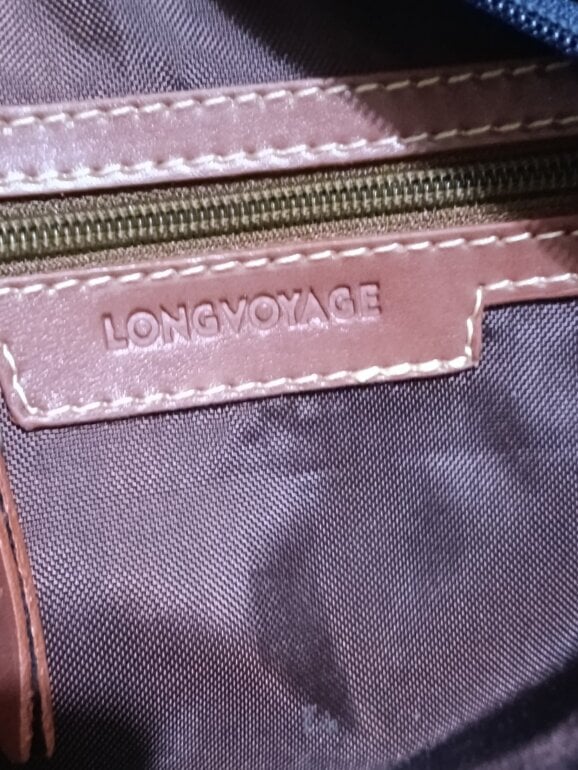 Prático bolso Long Voyage, mínimos detalles de uso: falta la gomita (del canto) en la parte media del asa. Compartimento exterior con zipper. Medidas: 27 cm alto x 40 cm ancho.