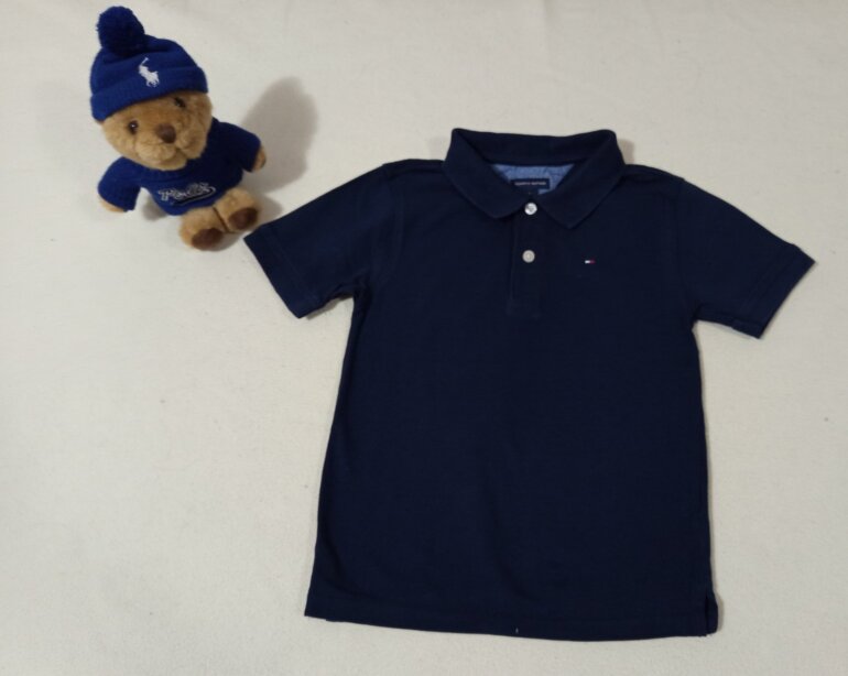 Linda playera Tommy Hilfiger, color azul marino, perfecta para toda ocasión, cómoda y moderna talla 6 años