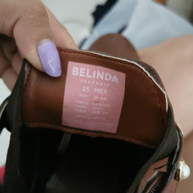 Botas café Belinda con aplicaciones nuevas del 25 tiene los detalles que se ven en la foto.