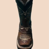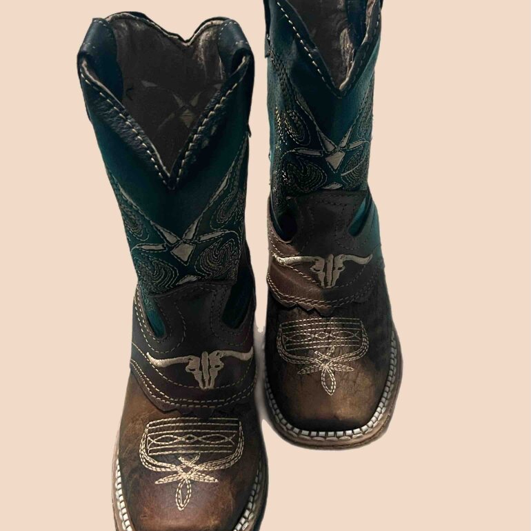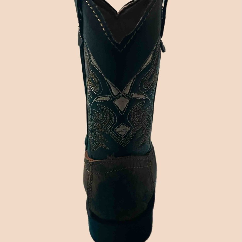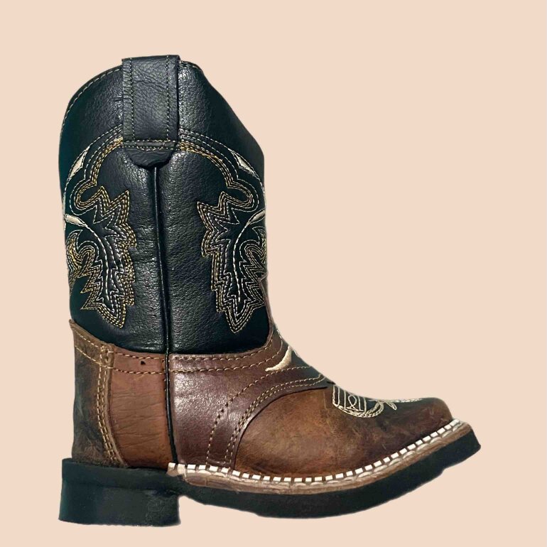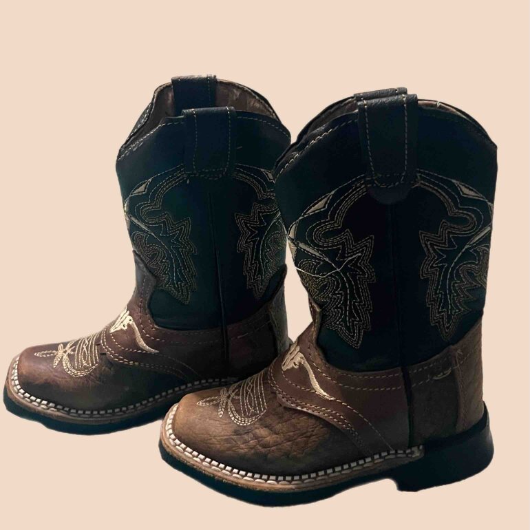 Botas vaqueras estilo rodeo para niño en número 15.5 color cafe con negro, completamente nuevas, con punta cuadrada y especiales para un outfit elegante de rancho para un pequeño vaquero.