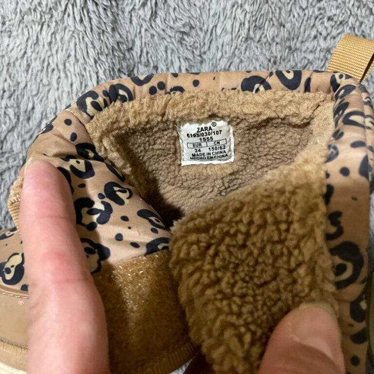 Son unas botas de nieve infantiles Zara con estampado de leopardo . Solo se usaron una vez sin detalles como nuevas súper caliento tas y cómodas