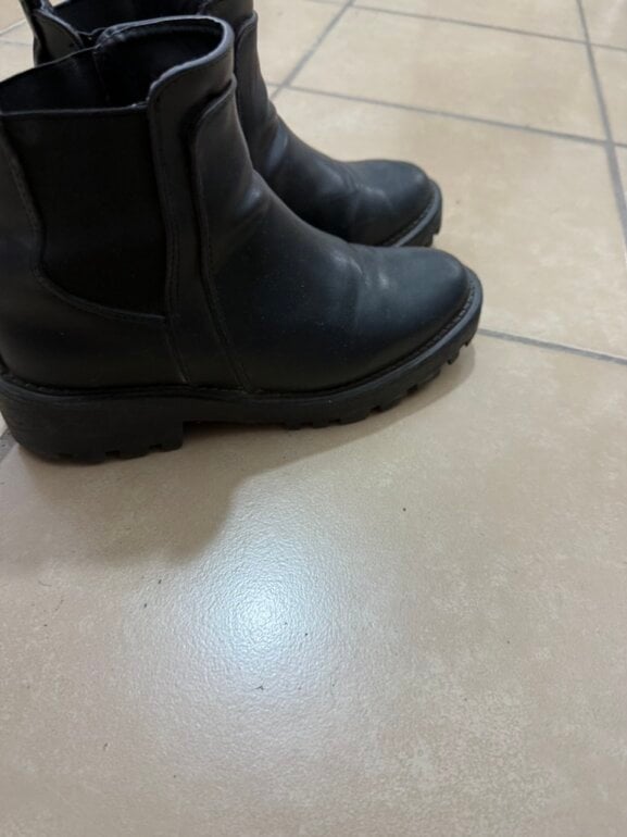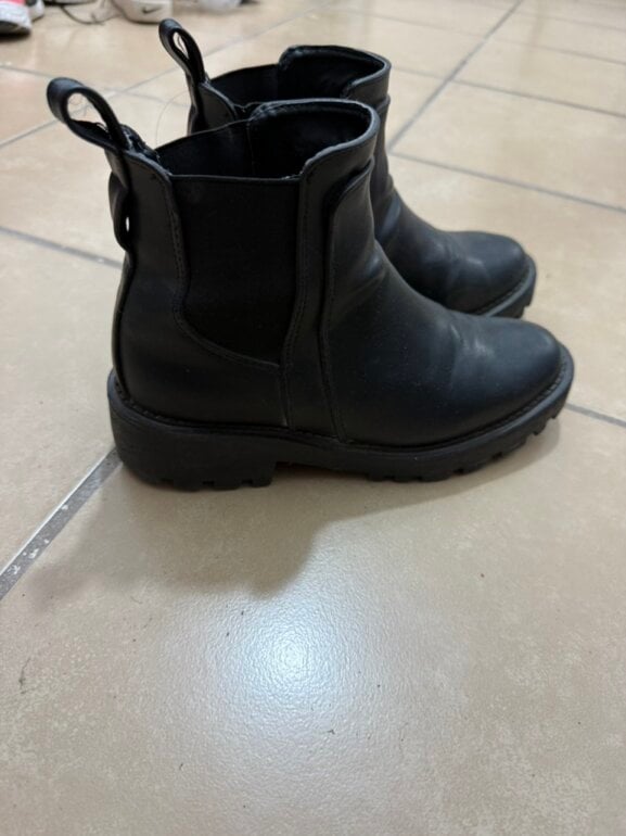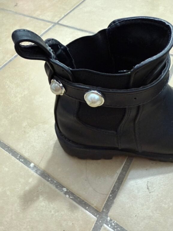 Botines tipo combat boot con banda que se puede quitar o poner con detalle que algunas perlas ya no las tiene, cómodas, en buen estado marca brebika quedan bien a 25-25.5
